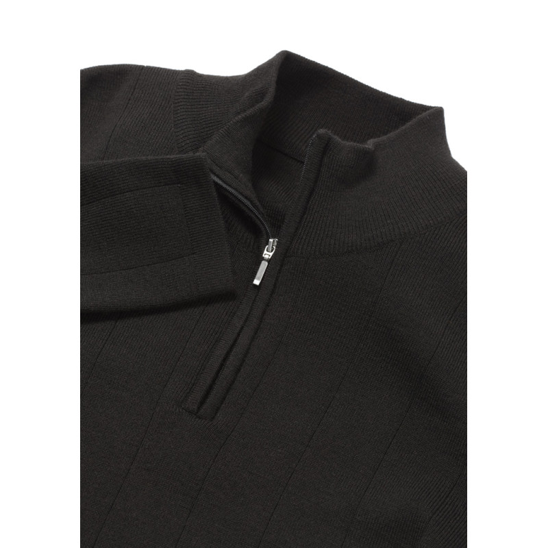 Contemporary V-neck style features ribbed side panel detail. Fabric: 50% Pre-Shrunk Wool, 50% Acrylic - 12 Gauge,Machine washable on wool setting.