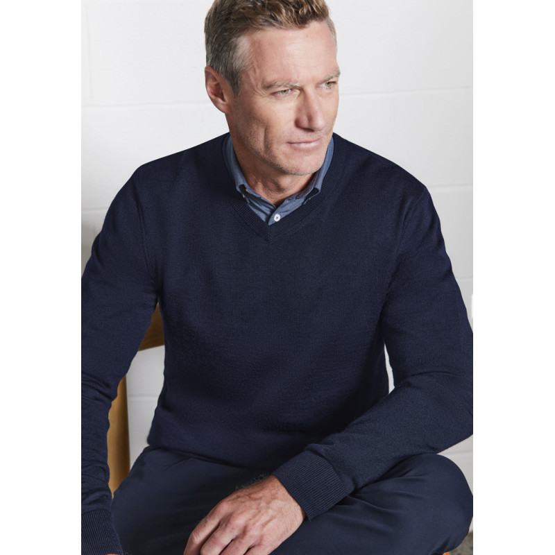 Fully fashioned, V neck basque,Contemporary styling and fit. Fabric: 100% Merino Wool - 12 Gauge,Fine yarn.