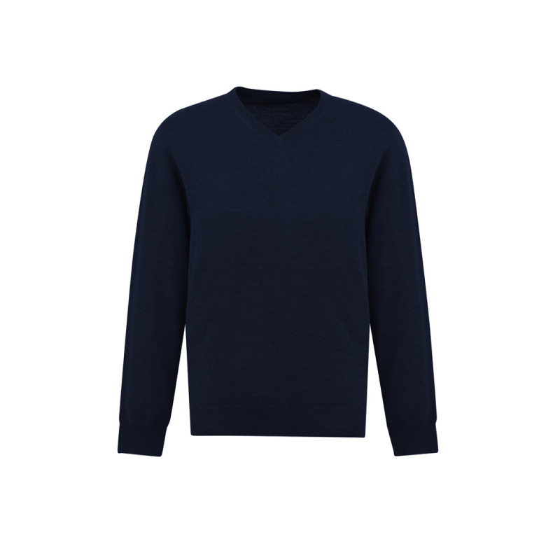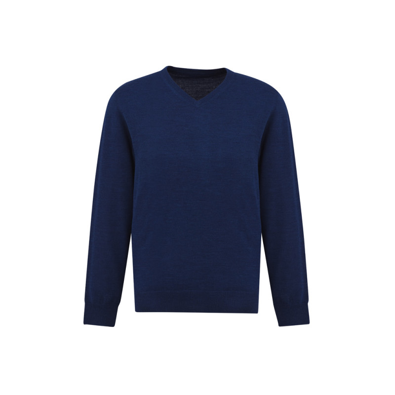 Contemporary V-neck style features ribbed side panel detail. Fabric: 50% Pre-Shrunk Wool, 50% Acrylic - 12 Gauge,Machine washable on wool setting.