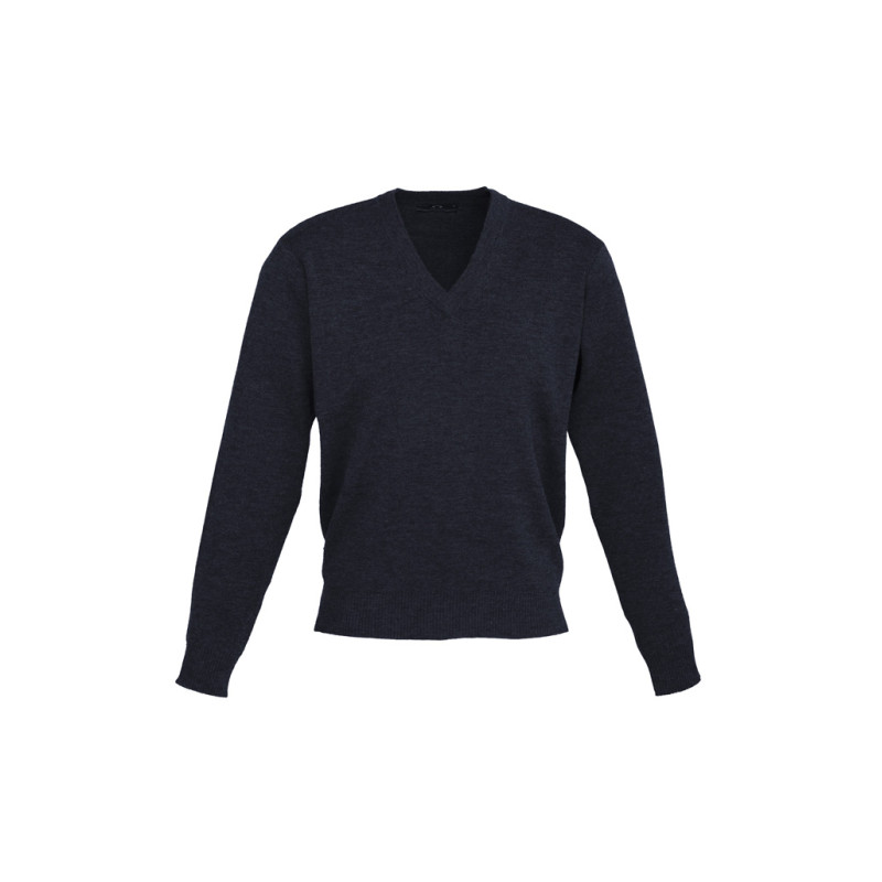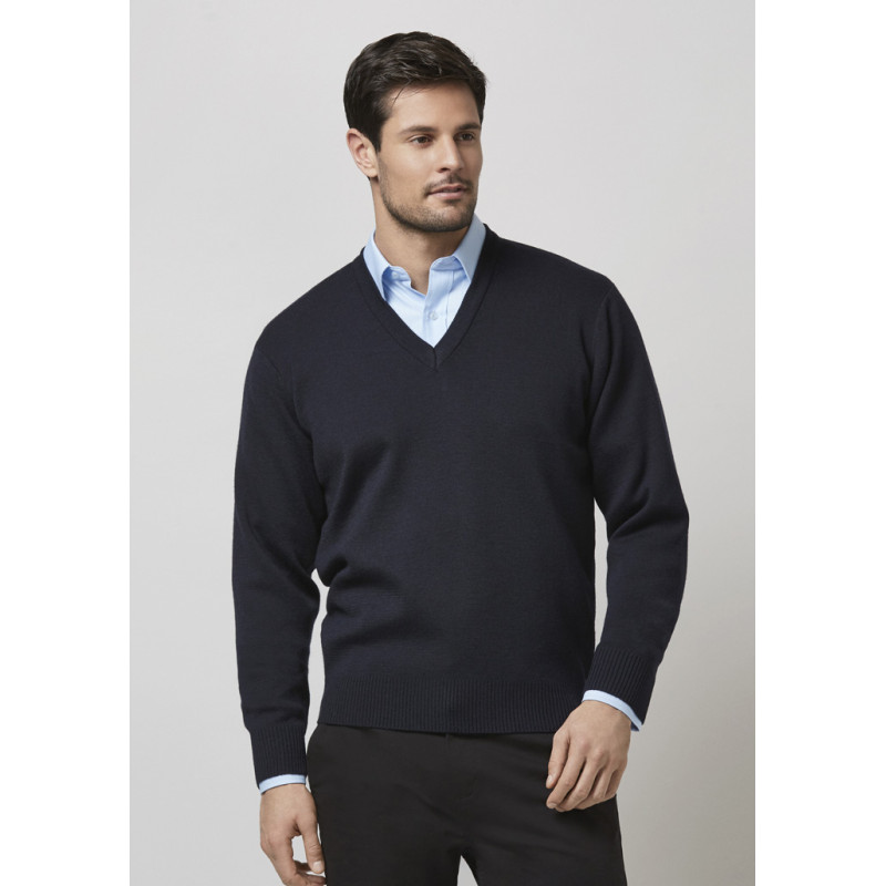 Mens classic fit V-neck with relaxed ribbed cuff and hem thats not too tight or loose. Fabric: 50% Merino Wool, 50% Acrylic - 14 Gauge,Machine washable on wool setting.