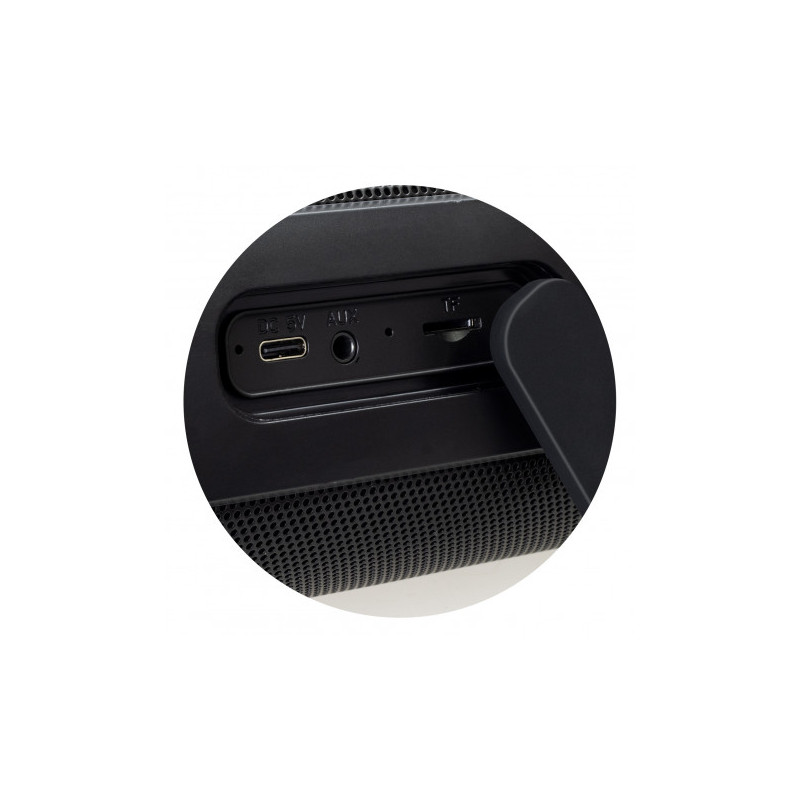 Luminous 8W Bluetooth speaker with four light functions including beat synchronization and the choice of seven different LED ring colours. Play music for up to 4 hours via Bluetooth, AUX cable or Micro-SD card, or answer calls via the hands-free call function. Spectrum is presented in a black gift box with a Type-C charging cable and instructions.