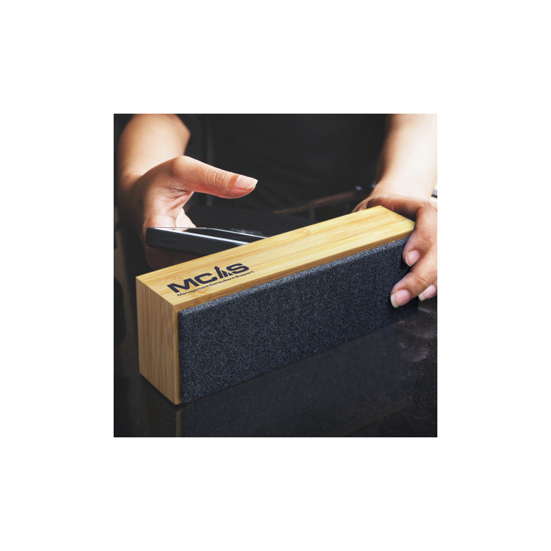Smart 5W Bluetooth speaker which is compatible with most mobile devices that support Bluetooth. Manufactured from bamboo with a heather polyester front, Sublime is the perfect addition to any setting. It has a wireless connectivity range of over 10 metres and a playing time of approximately 6 hours depending on the volume. It is easily recharged from a...