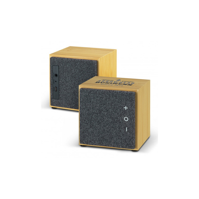 Cube shaped speakers that are portable and lightweight. 1 watt stereo speakers with cable. Full colour offset printing available on both the speakers and the packaging.