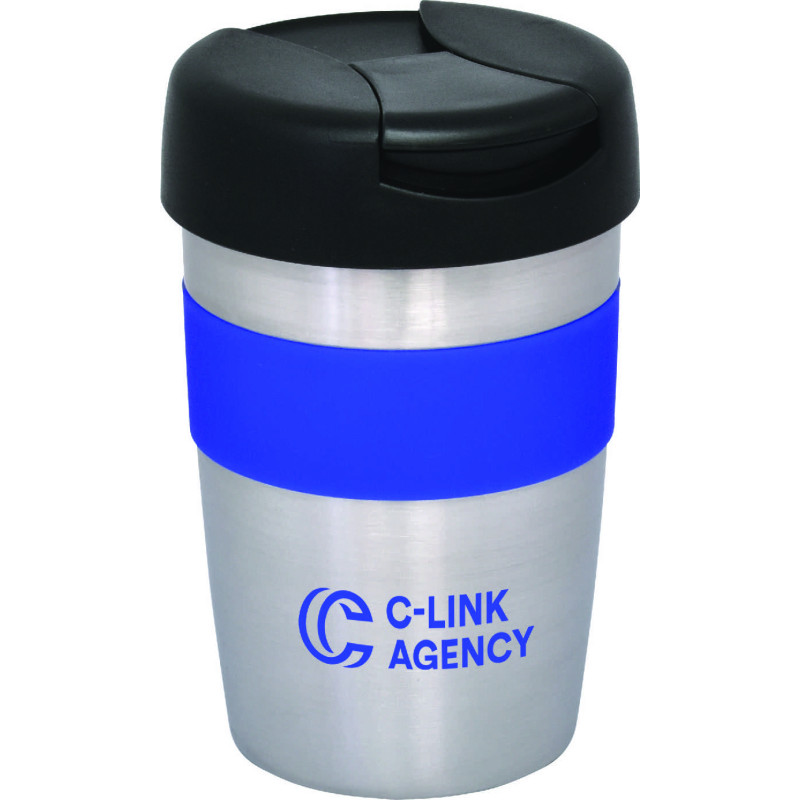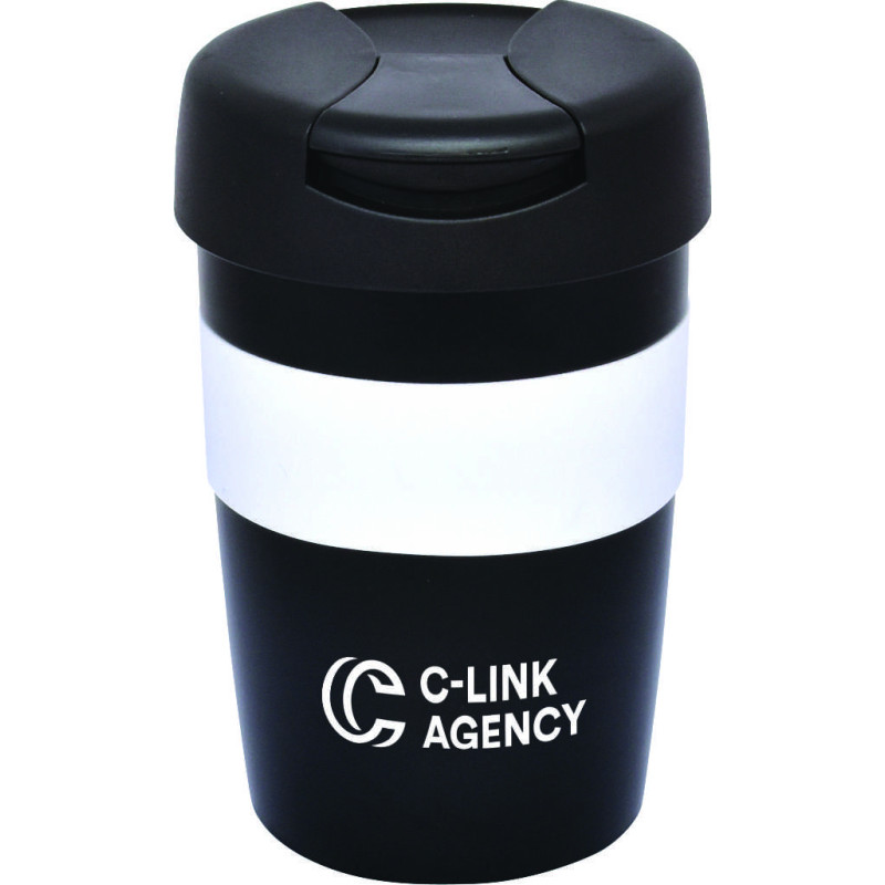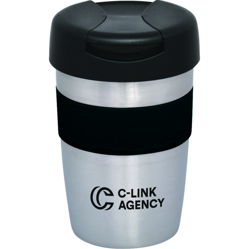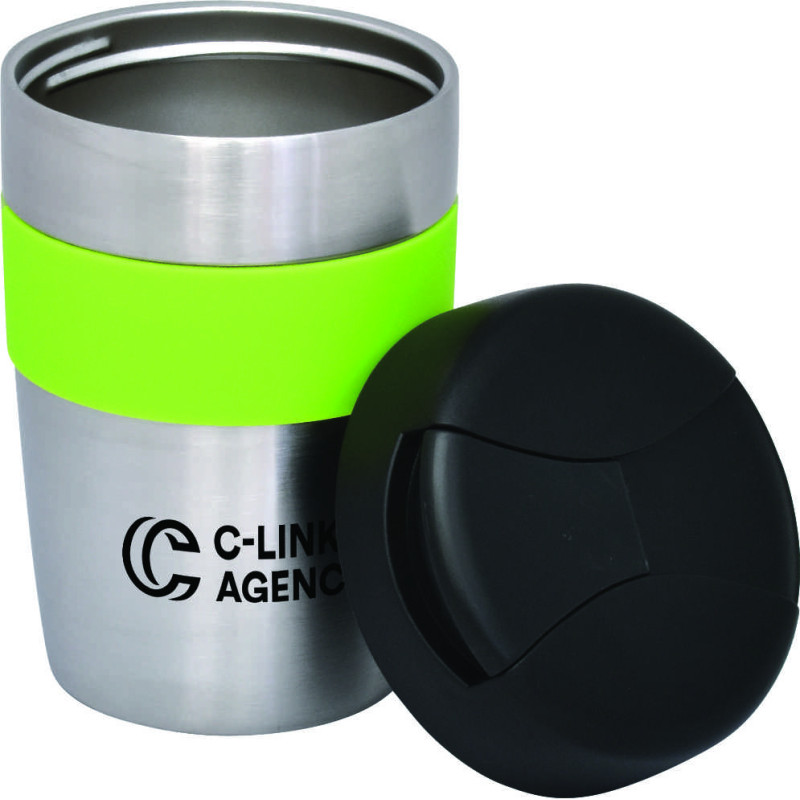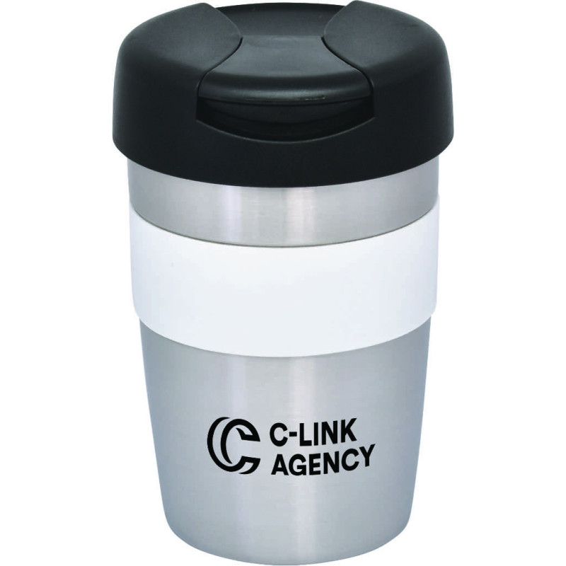 350ml double walled stainless steel vacuum cup with secure screw lid & flip up tab with silicone seal. Drinks will remain hot/cold for up to 6 hours. Slim design and suitable for car cup holders. BPA free. For logo longevity hand washing is recommended. Not suitable for carbonated liquids or freezing. Eco Credentials: Reusable, Sustainable, Printed...
