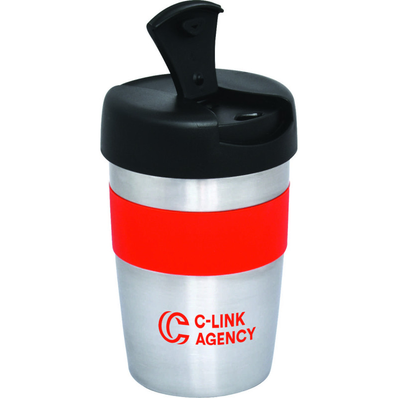Ideal for use around the office, warehouse or while on the go, the Lisbon double wall mug features a stylish stainless steel outer with plastic inner as well as a solid handle for easy gripping. Lisbon is designed to keep your coffee hot while ensuring the outside of the mug remains cool. The acrylic see-through lid with sliding tab prevents spillage...