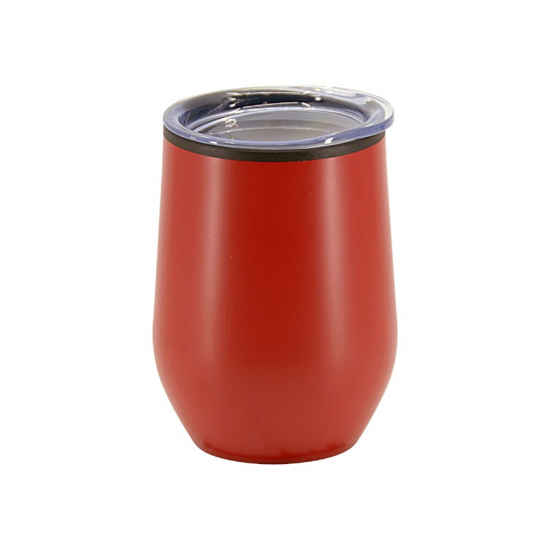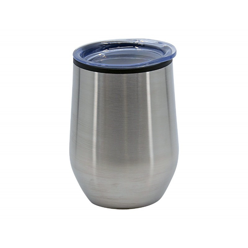 350ml (two standard glasses of wine) 304 grade stainless steel egg shape wine and coffee cup with a BPA free push-seal plastic lid, powder coated matt finishing exterior and electrolysis interior, double walled and vacuum insulated technology will keep your white wine cold around 7-9 hours while you sit out at the pool on a hot summer day, or your coffee...
