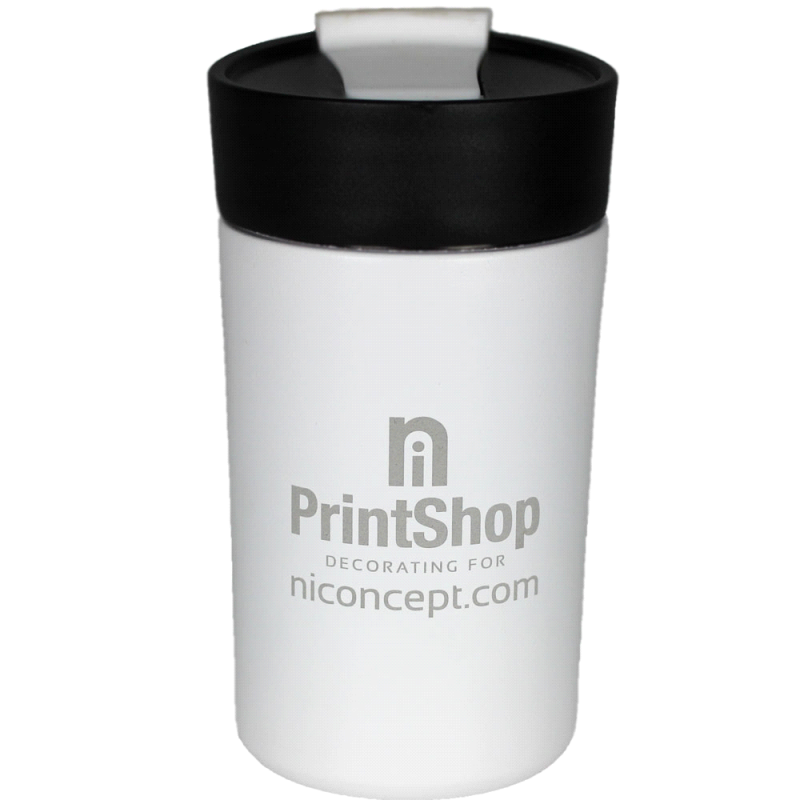 320ml curved double wall vacuum cup. Modern design. Will keep drinks hot or cold for about 3 hours. Push seal lid with sliding splash proof cover. BPA free stainless steel which is easy to keep clean. Available in a vibrant range of gloss colours. For logo longevity hand washing is recommended. Eco Credentials: Reusable, sustainable, and printed using...