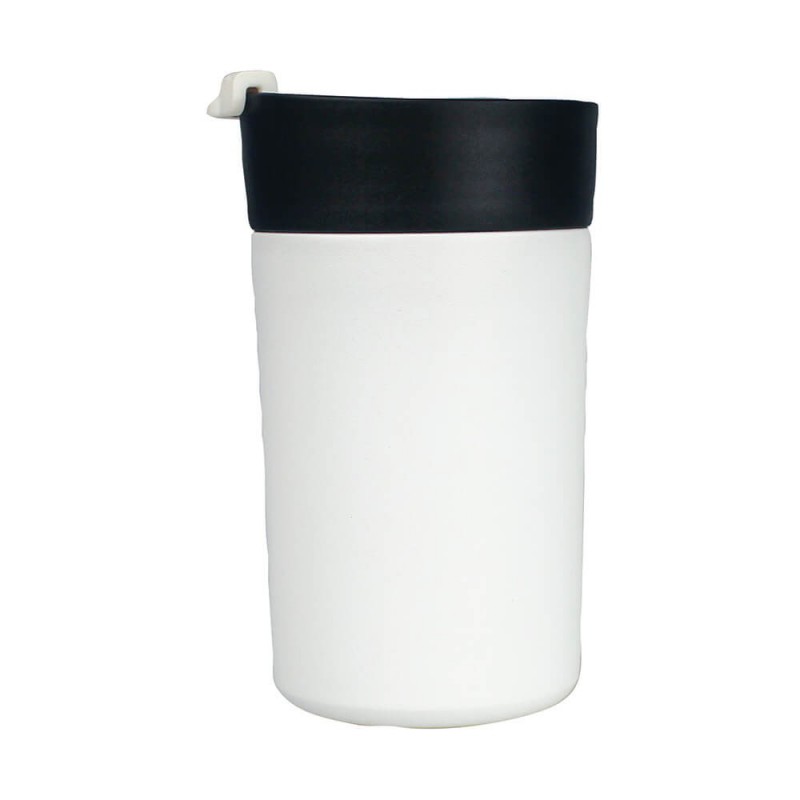 This uniquely styled curved mug is 100% BPA free and features a powder-coated outer (black & white), pro-grade 18/8 double wall vacuum stainless steel construction, unique copper lining (designed to keep drinks hot or cold for hours) and clear acrylic lid. This 320ml capacity vacuum mug is available in powder-coated matt black, matt white or natural...