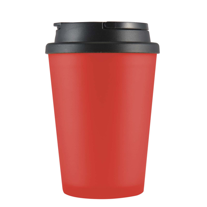 Reusable 230ml double wall coffee cup which will keep drinks hot for longer. It has a silicone band and a secure screw on lid with a splashproof flip closure. The cup is manufactured from crystal-clear AS plastic and the lid is polypropylene. Both materials are BPA-free. The lid, flip closure and band can be mixed and matched in any colour combination...