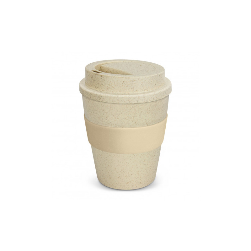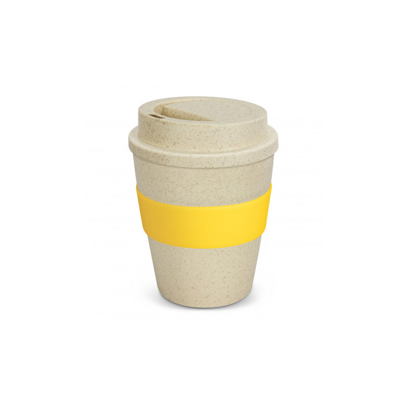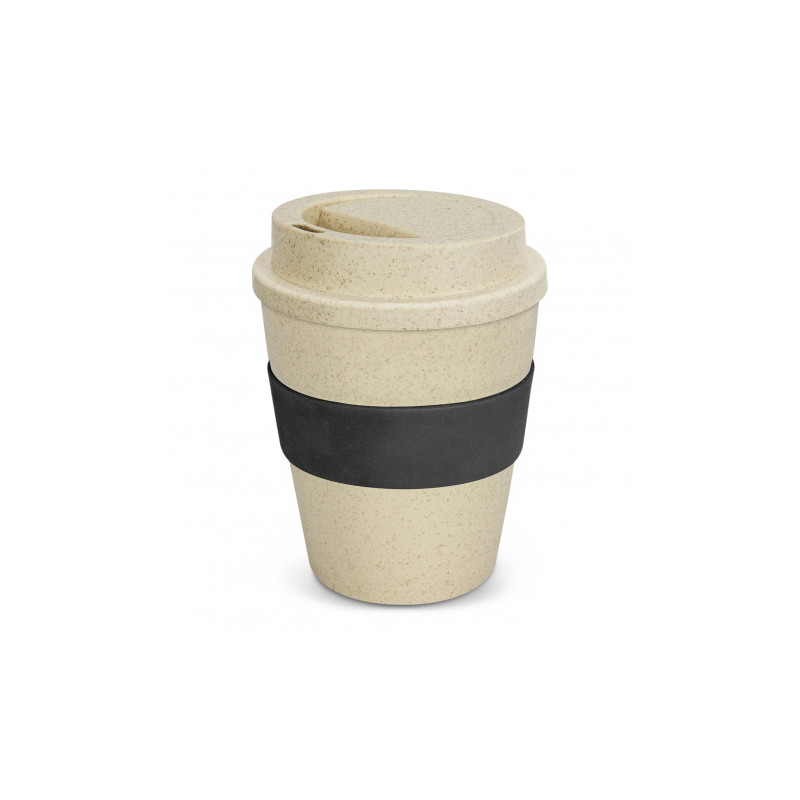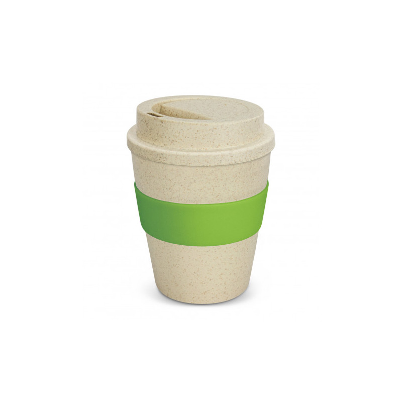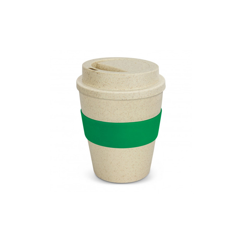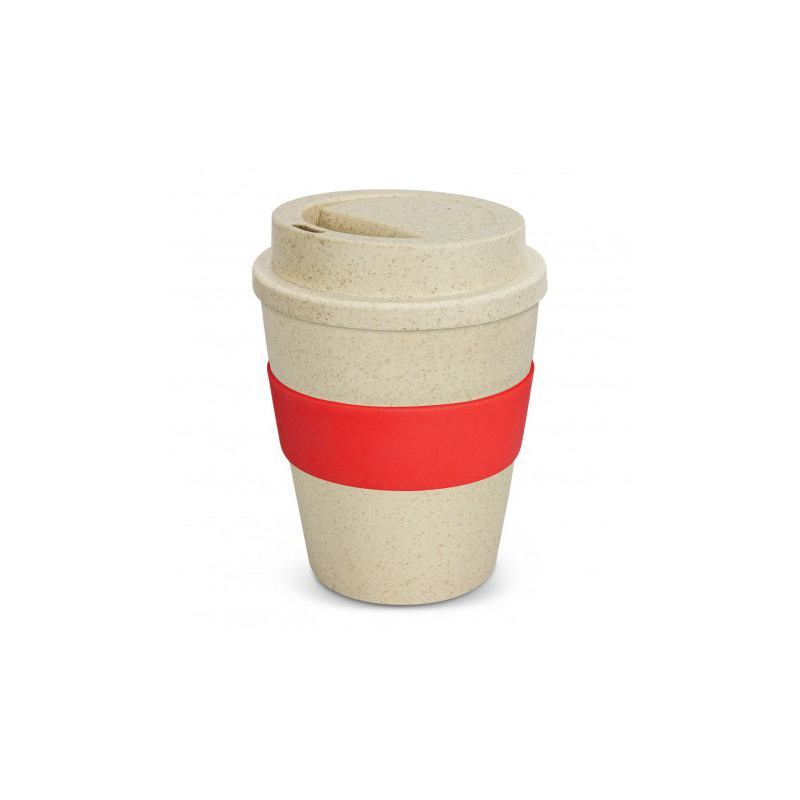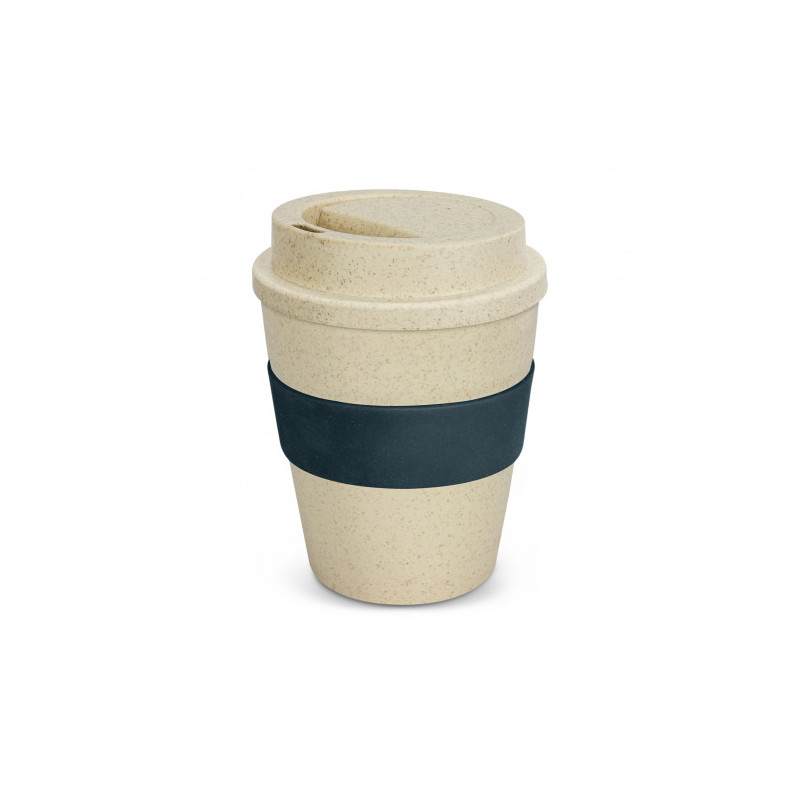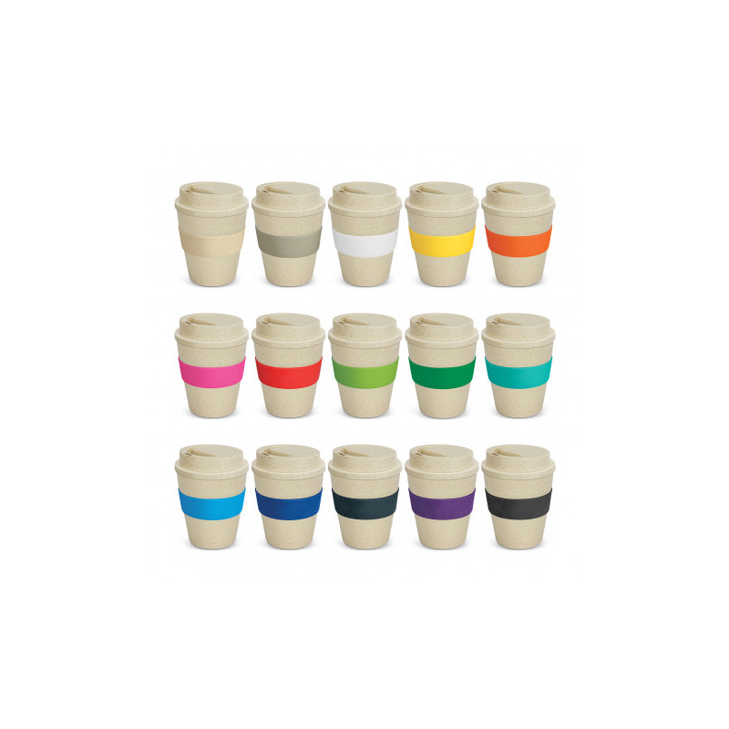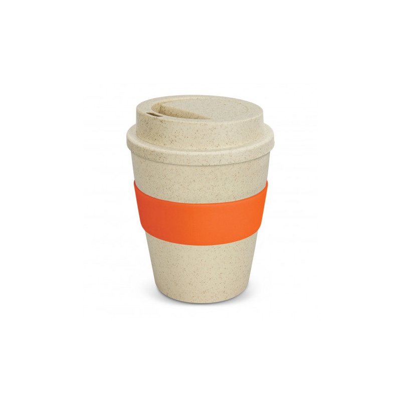 Unique 480ml reusable coffee cup which is manufactured from a 50/50 blend of natural rice husk fibre and BPA-free polypropylene. It has a heat-resistant silicone band and a secure screw on lid with a splashproof flip closure. The flip closure and silicone band can be mixed and matched in any colour combination from the colour palette at no extra cost. Up...