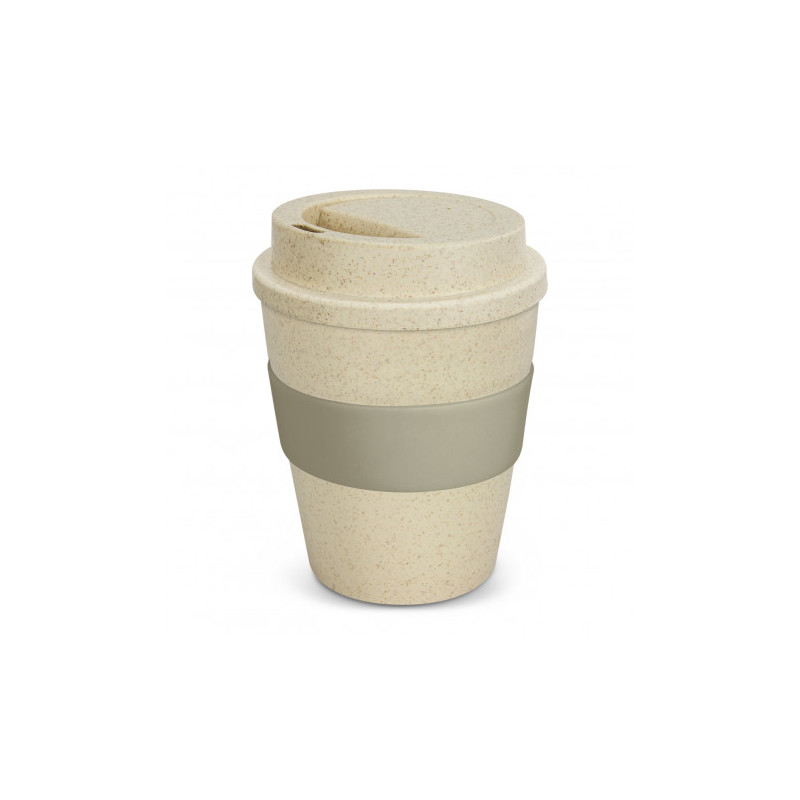 Unique 340ml double wall reusable coffee cup which will keep drinks hot for longer and remain comfortable to hold. It is manufactured from a 50/50 blend of natural rice husk fibre and BPA-free polypropylene. It has a decorative silicone band and a secure screw on lid with a splashproof flip closure. The silicone band and flip closure can be mixed and...