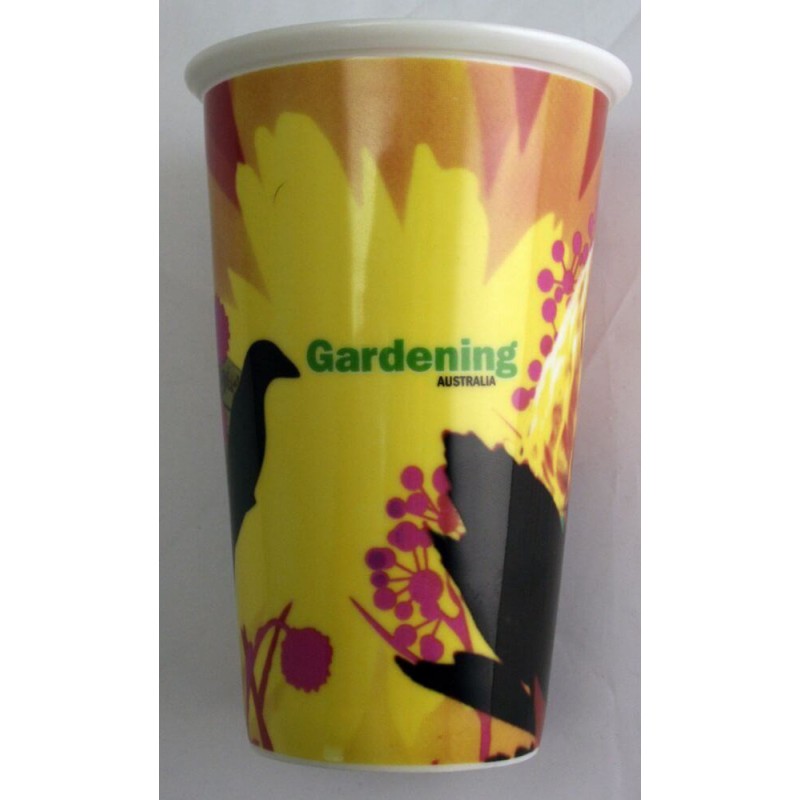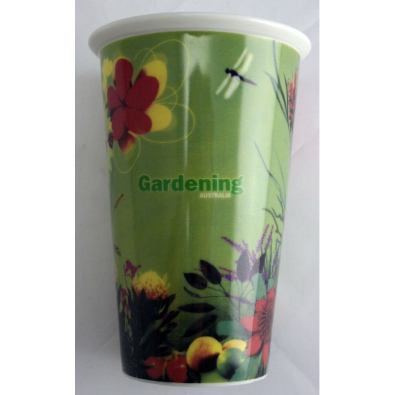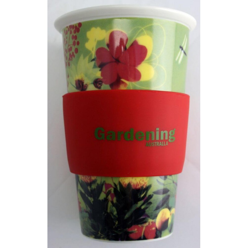 350ml double walled hot/cold cup. Silicone sealed flip up handle lid. Tough foldable carry handle. BPA free. Microwave safe. These mugs have a coloured translucent outer layer over a solid white inner lining. For logo longevity hand washing is recommended. Eco Credentials: Reusable, sustainable, printed using renewable energy.