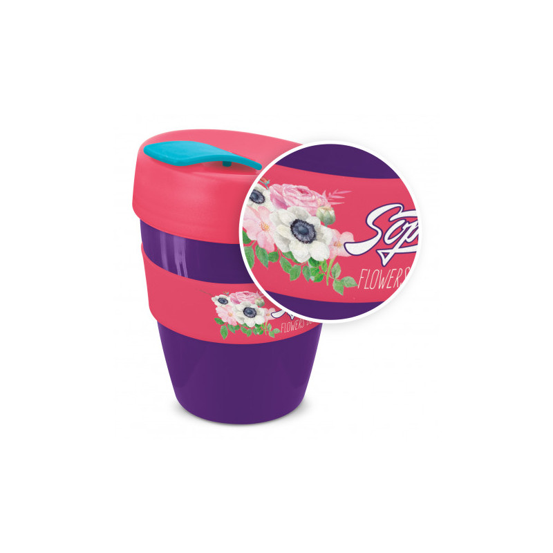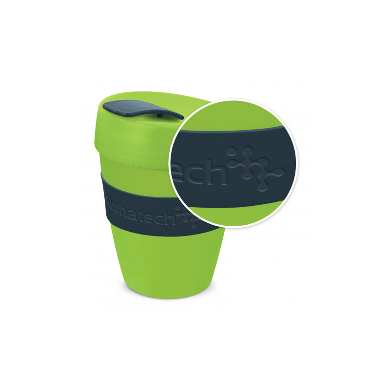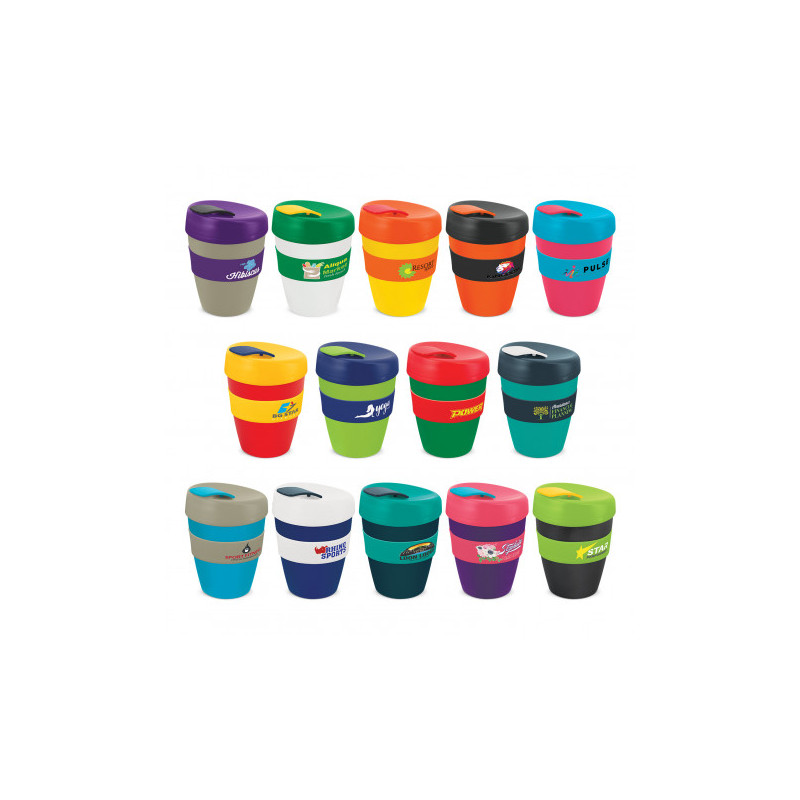 360ml cup made from BPA free Tritan material with push down PE lids and silicone bands. Available in 6 colours or mix-and-match lids and sleeves in up to 36 combinations.