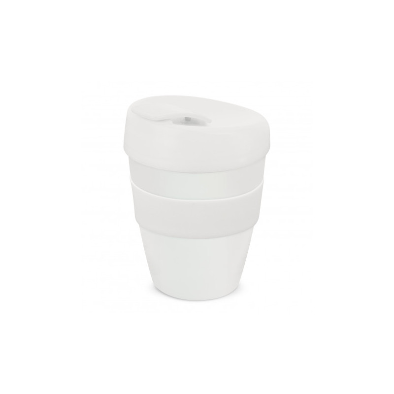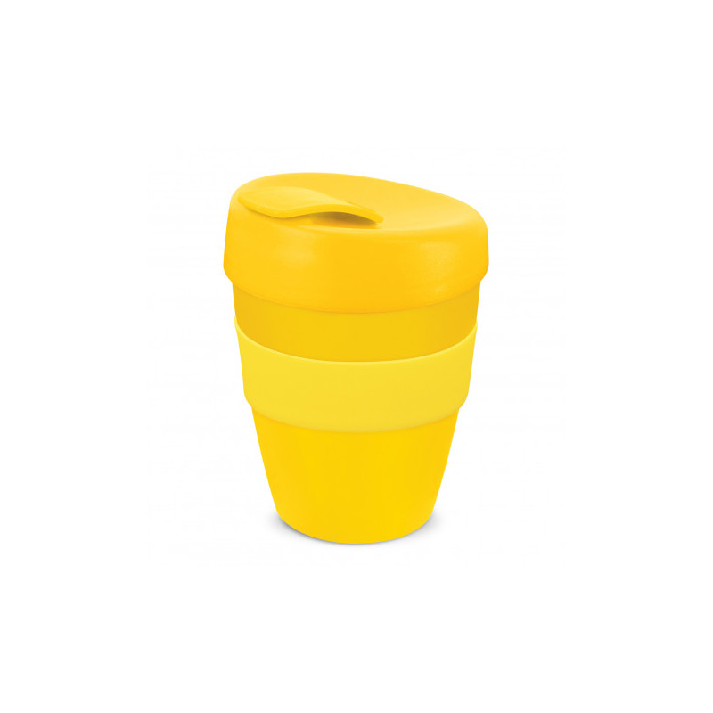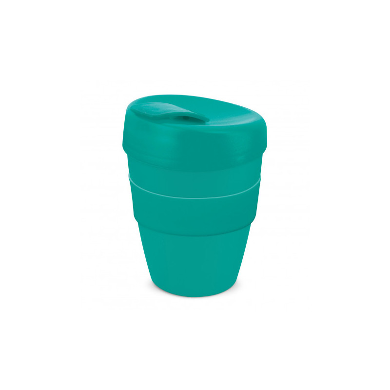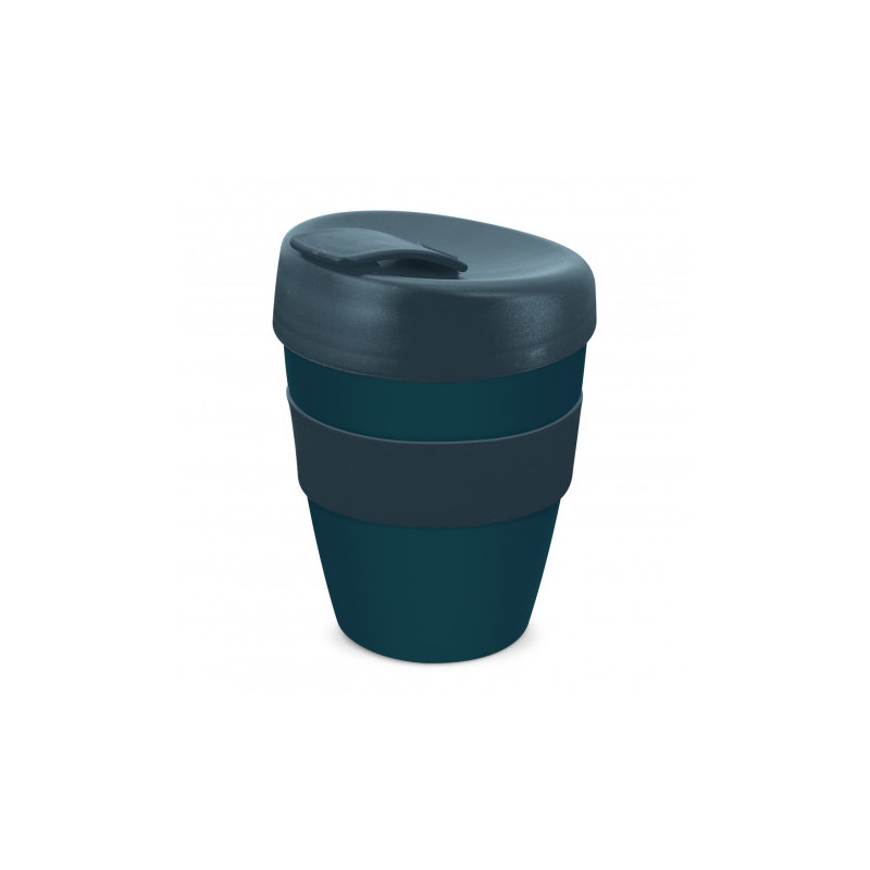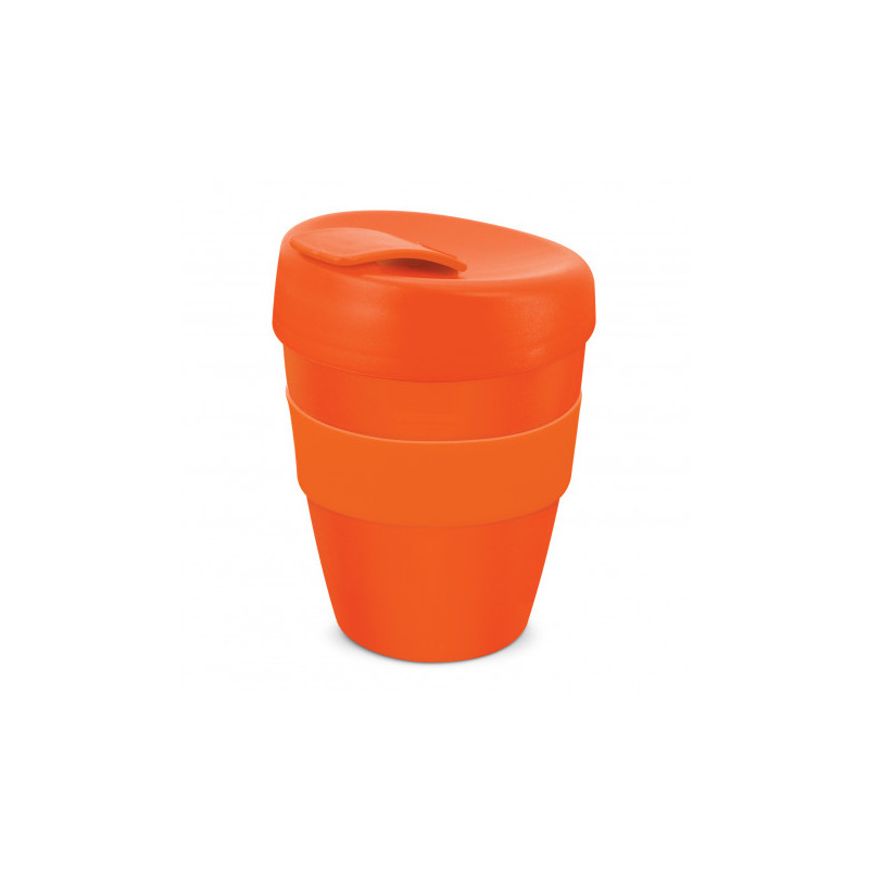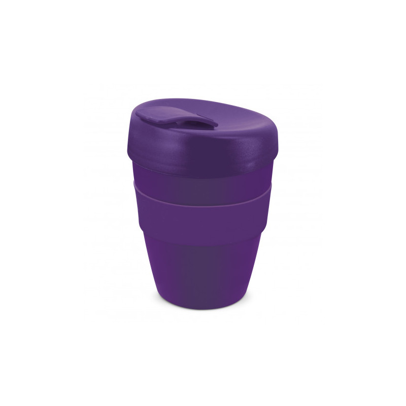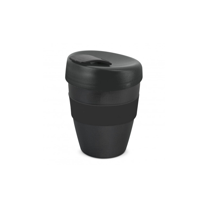 Reusable 230ml double wall coffee cup which will keep drinks hot for longer. It has a silicone band and a secure screw on lid with a splashproof flip closure. The cup is manufactured from crystal-clear AS plastic and the lid is polypropylene. Both materials are BPA-free. The lid, flip closure and band can be mixed and matched in any colour combination...