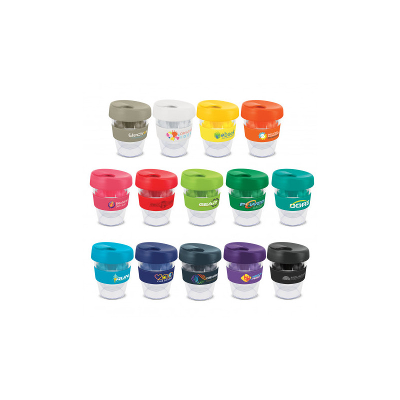 360ml cup made from BPA free Tritan material with push down PE lids and silicone bands. Available in 6 colours or mix-and-match lids and sleeves in up to 36 combinations.