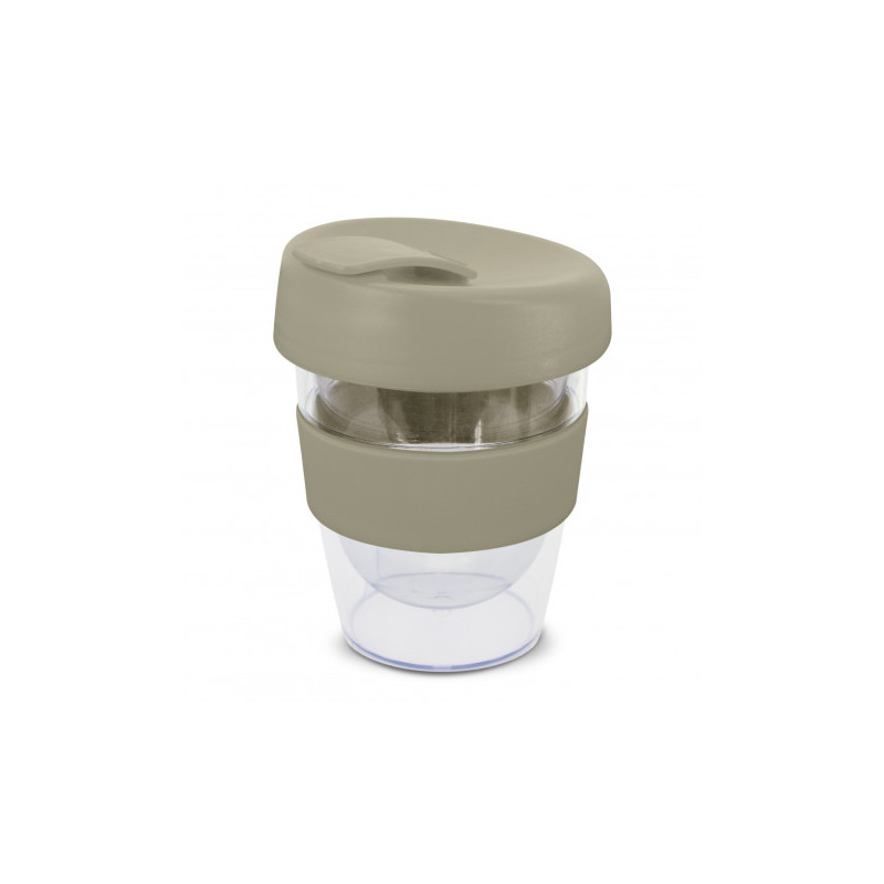 Design inspired 250ml reusable coffee cup that has an incredible story to tell. Manufactured from borosilicate glass, it has a heat-resistant silicone band and a secure push on Natura lid which is manufactured from a 50/50 blend of natural rice husk fibre and BPA-free polypropylene, with a silicone seal. The flip closure and band can be mixed and matched...