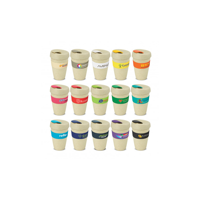 With the disposal of environmentally harmful plastic cups in todays society, nothing reflects awareness and sustainability in a business more than promotional BPA free coffee cups. Our new Cup2Go with Wheat Straw PP sports a stylish design with screw-top lid (with flip-top to prevent annoying splashes) and silicone band! This promotional coffee cup is...