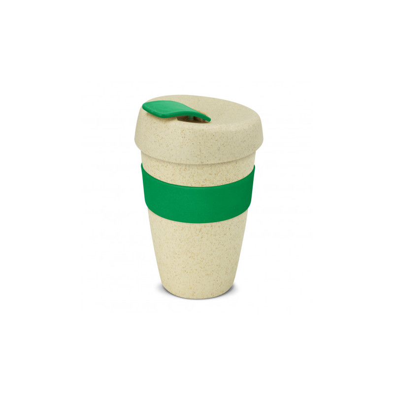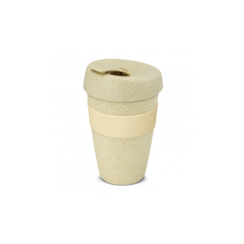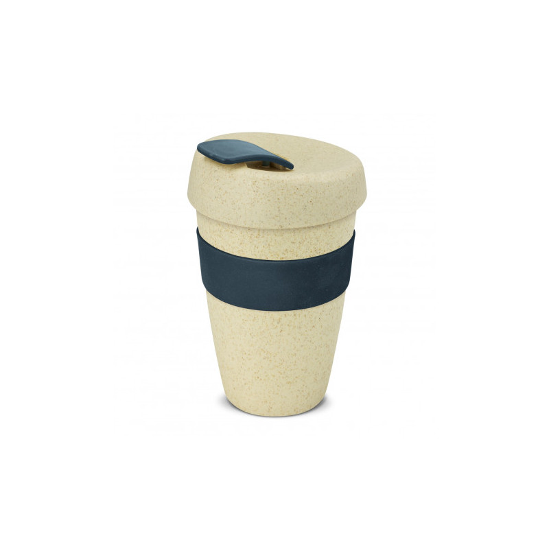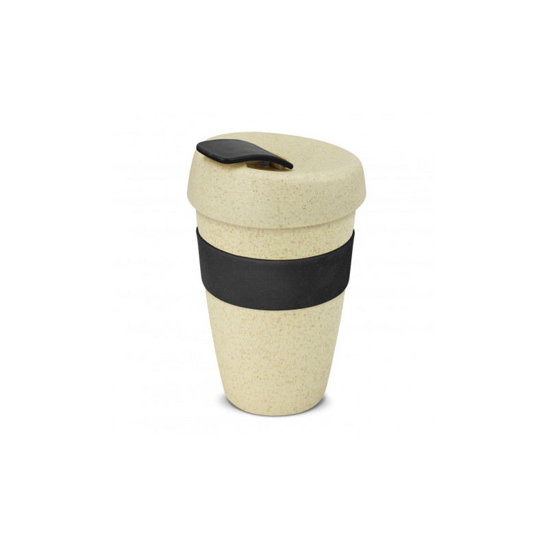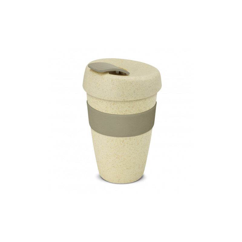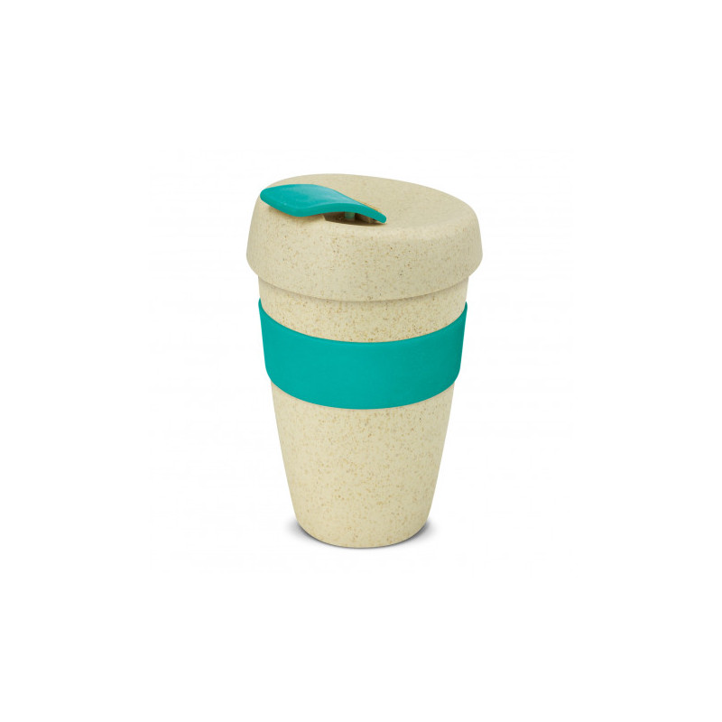 Design inspired 350ml reusable coffee cup that has an incredible story to tell. Manufactured from borosilicate glass, it has a heat-resistant silicone band and a secure push on Natura lid which is manufactured from a 50/50 blend of natural rice husk fibre and BPA-free polypropylene, with a silicone seal. The flip closure and band can be mixed and matched...