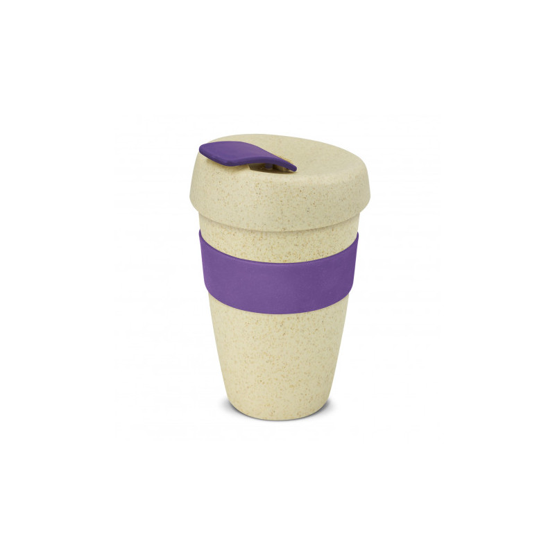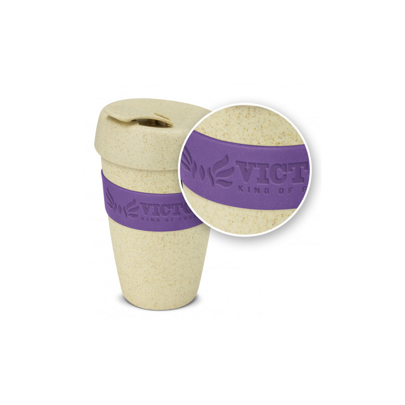 Unique 340ml double wall reusable coffee cup which will keep drinks hot for longer and remain comfortable to hold. It is manufactured from a 50/50 blend of natural rice husk fibre and BPA-free polypropylene. It has a decorative silicone band and a secure screw on lid with a splashproof flip closure. The silicone band and flip closure can be mixed and...