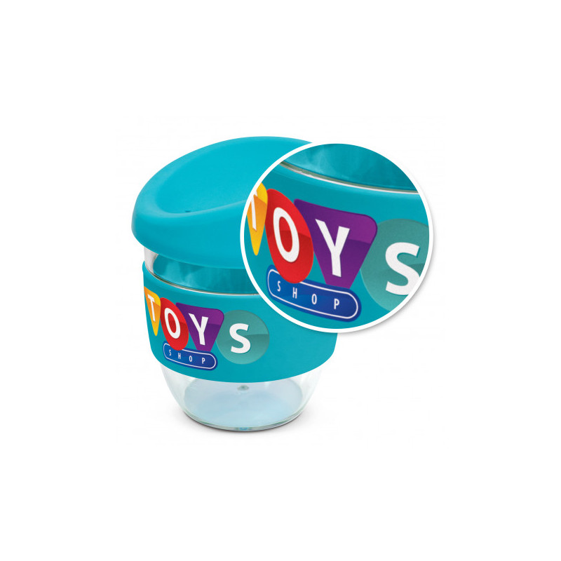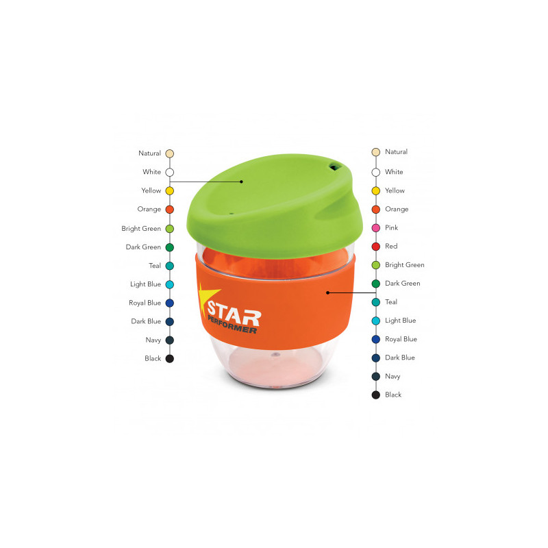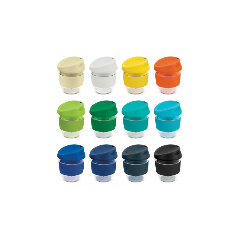 360ml cup made from BPA free Tritan material with push down PE lids and silicone bands. Available in 6 colours or mix-and-match lids and sleeves in up to 36 combinations.
