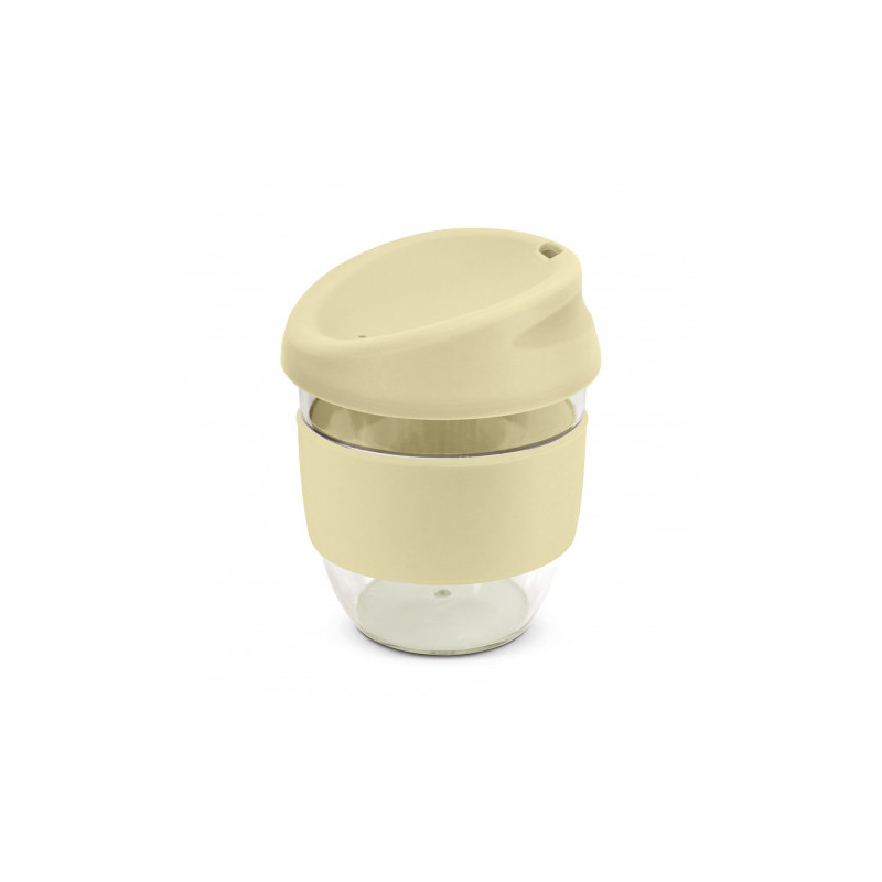 Design inspired 250ml reusable coffee cup that has an incredible story to tell. Manufactured from borosilicate glass, it has a heat-resistant silicone band and a secure push on Natura lid which is manufactured from a 50/50 blend of natural rice husk fibre and BPA-free polypropylene, with a silicone seal. The flip closure and band can be mixed and matched...