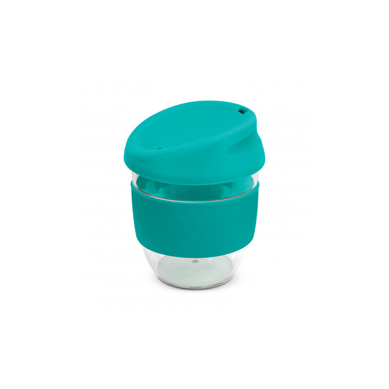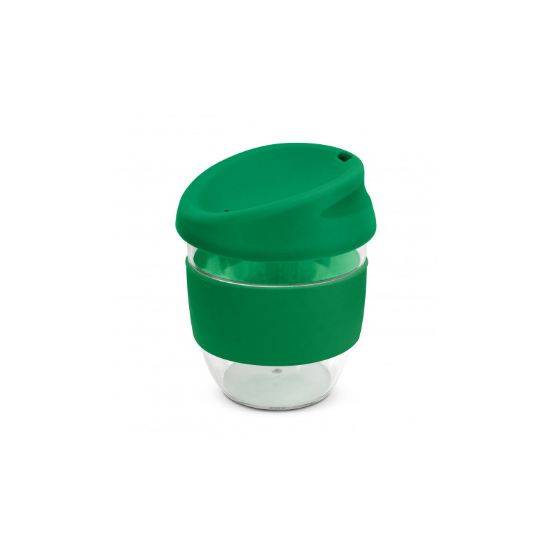 Glass single wall Karma Kups are a great new style of mug. Glass Karma Kups are available in a great range of colours you can mix and match all the colours of the bands and lids to create your special design. These mugs are supplied bulk packed or packed in a recycled container at additional charge.