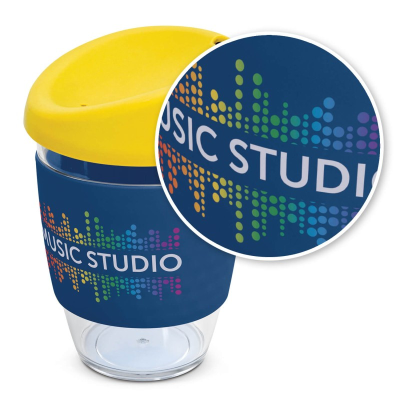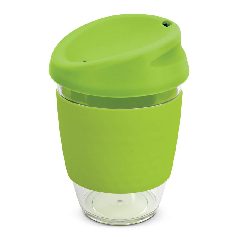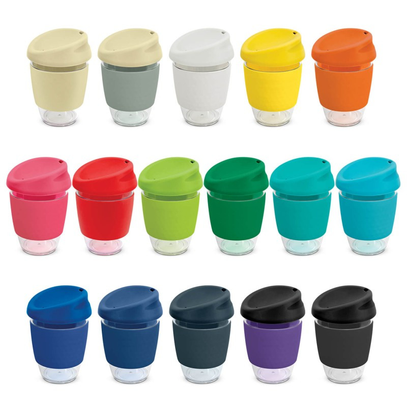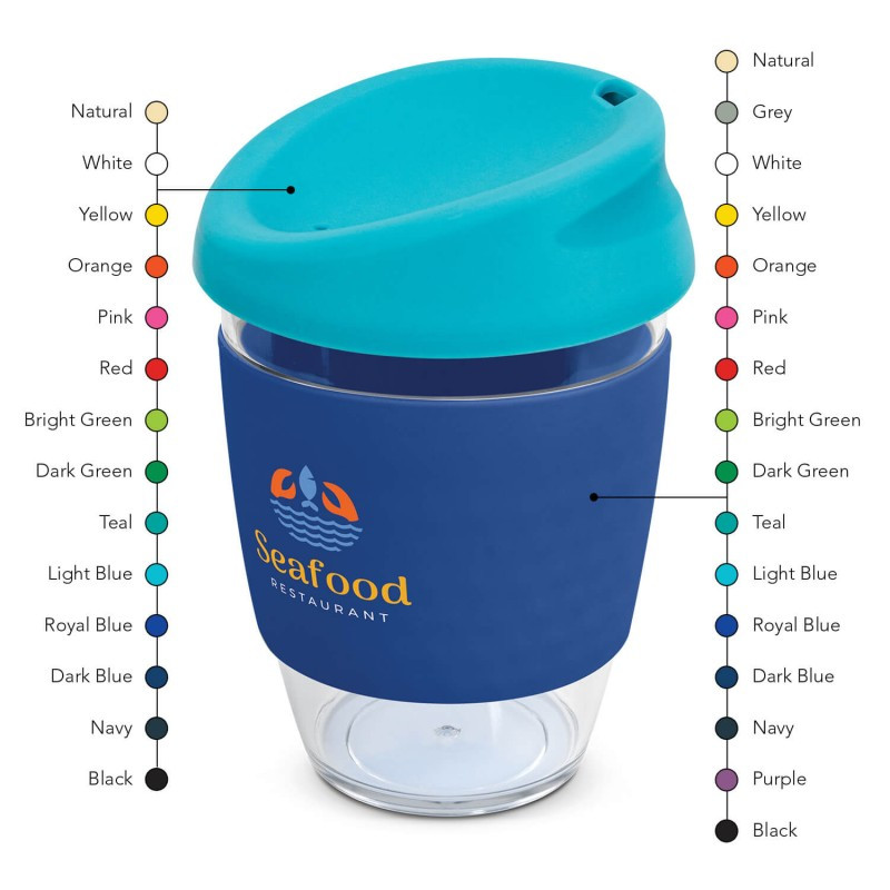 360ml cup made from BPA free Tritan material with push down PE lids and silicone bands. Available in 6 colours or mix-and-match lids and sleeves in up to 36 combinations.