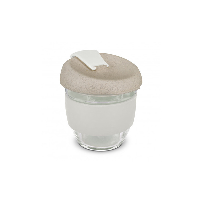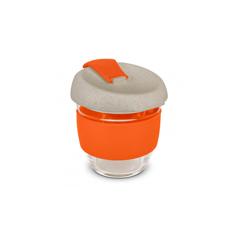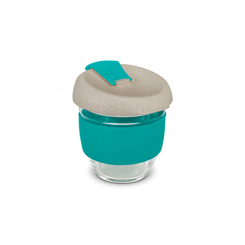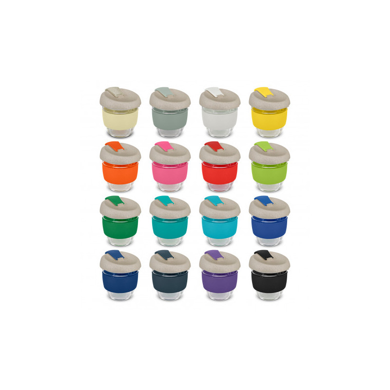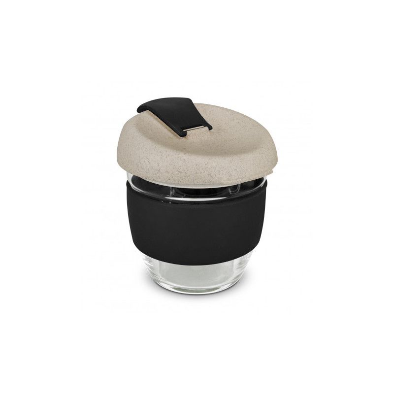 Design inspired 350ml reusable coffee cup that has an incredible story to tell. Manufactured from borosilicate glass, it has a heat-resistant silicone band and a secure push on Natura lid which is manufactured from a 50/50 blend of natural rice husk fibre and BPA-free polypropylene, with a silicone seal. The flip closure and band can be mixed and matched...