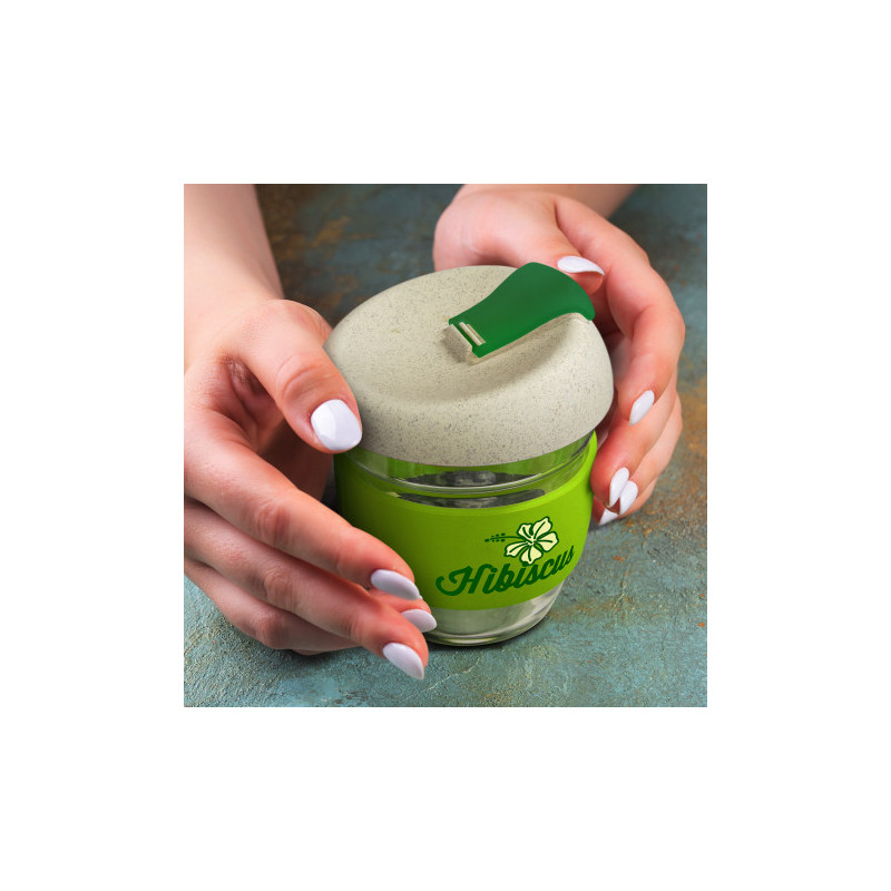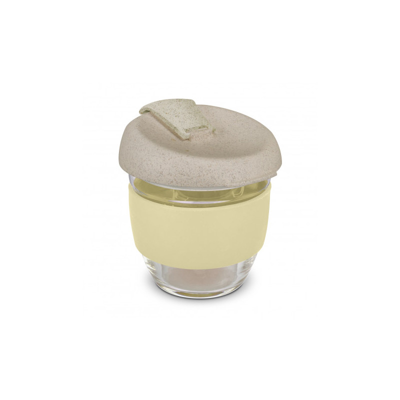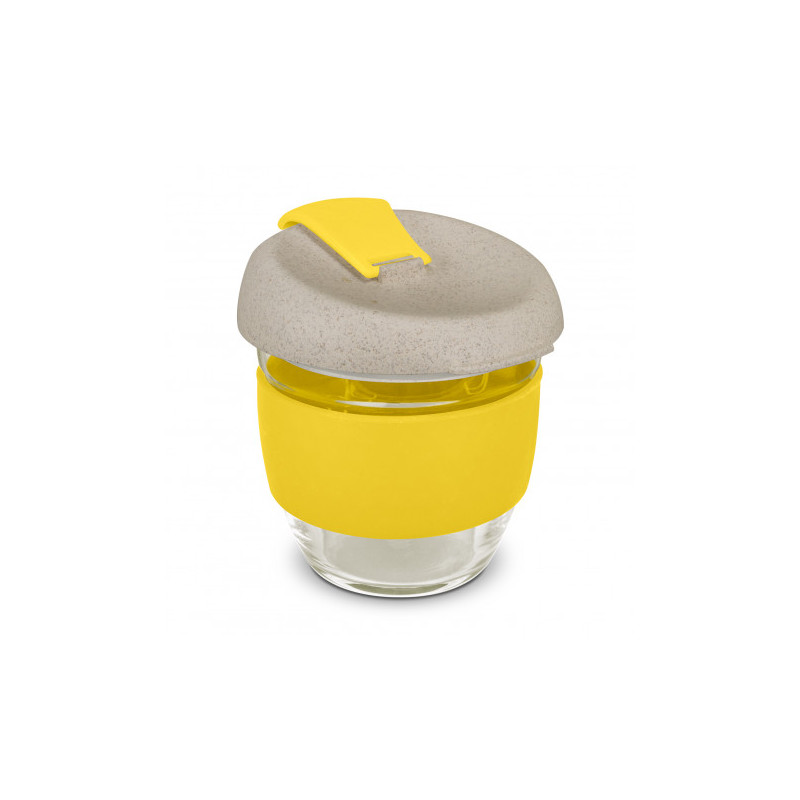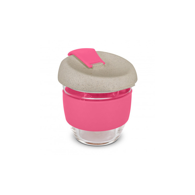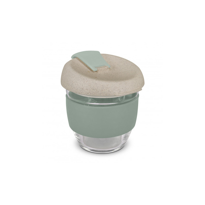 Design inspired 350ml reusable coffee cup that has an incredible story to tell. Manufactured from borosilicate glass, it has a heat-resistant silicone band and a secure push on Natura lid which is manufactured from a 50/50 blend of natural rice husk fibre and BPA-free polypropylene, with a silicone seal. The flip closure and band can be mixed and matched...