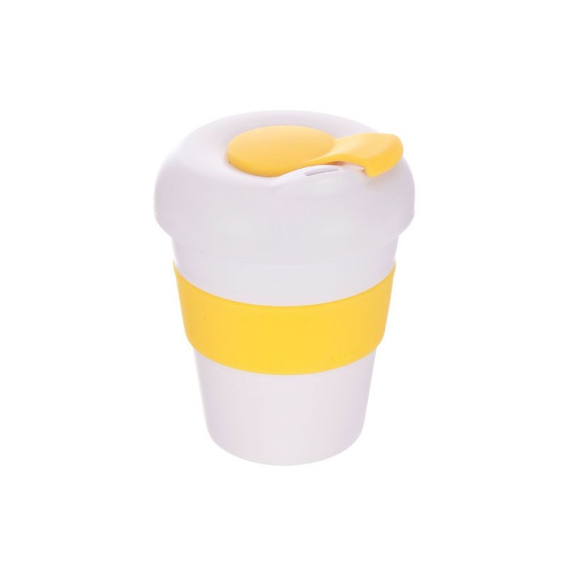 Reusable 230ml double wall coffee cup which will keep drinks hot for longer. It has a silicone band and a secure screw on lid with a splashproof flip closure. The cup is manufactured from crystal-clear AS plastic and the lid is polypropylene. Both materials are BPA-free. The lid, flip closure and band can be mixed and matched in any colour combination...