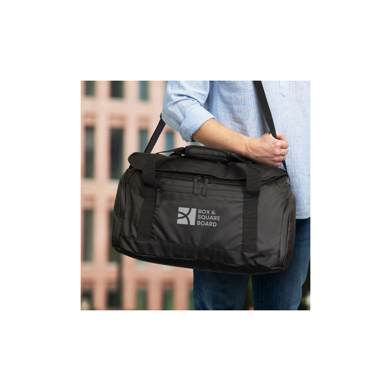 This practical lightweight duffle with a 15.6inch laptop compartment with a large main compartment with RFID pockets. Manufactured from 1680D and 600D polyester the sports duffle is fitted with a shoulder strap for comfort. Other features include side shoe compartments, a front zippered pocket, and a quick-access side pocket.