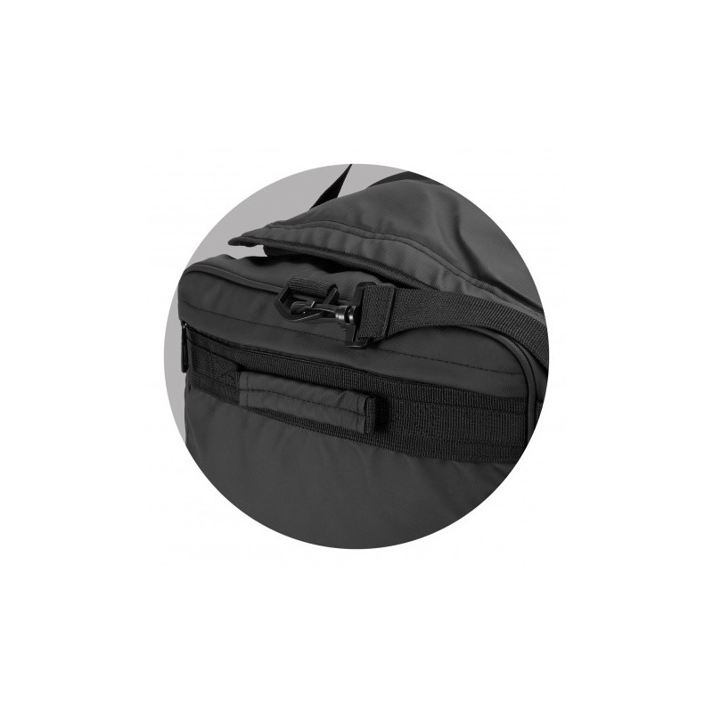 This practical lightweight duffle with a 15.6inch laptop compartment with a large main compartment with RFID pockets. Manufactured from 1680D and 600D polyester the sports duffle is fitted with a shoulder strap for comfort. Other features include side shoe compartments, a front zippered pocket, and a quick-access side pocket.