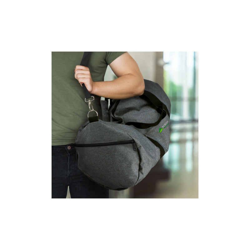 This practical lightweight duffle with a 15.6inch laptop compartment with a large main compartment with RFID pockets. Manufactured from 1680D and 600D polyester the sports duffle is fitted with a shoulder strap for comfort. Other features include side shoe compartments, a front zippered pocket, and a quick-access side pocket.