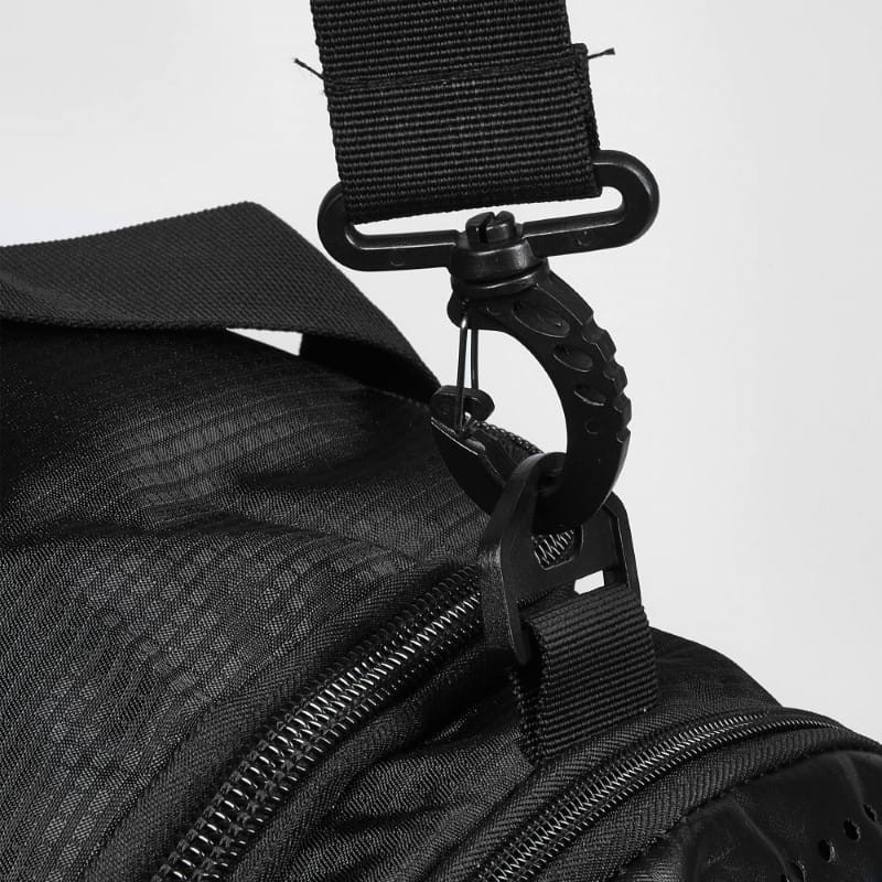 Large 50L duffle bag made of 210D and reverse 900D water repellent pleather. It has a lot of space, long adjustable shoulder straps, front and back handles, and middle straps.
