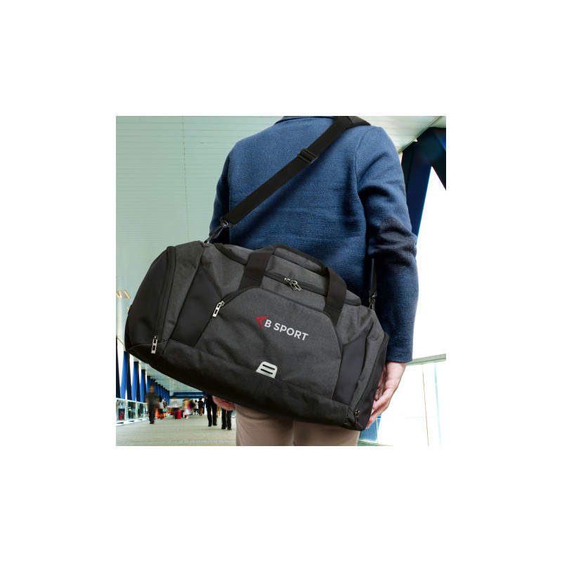 Step into the future with the function of the Travel Sports Bag featuring wide end pockets, wet pocket and slip pockets for all your bits and pieces. 600D polyester|Adjustable webbing shoulder strap with pad|Wet pocket in right end|Large double zippered main compartment with U-shape opening|Wide pockets on each end|Zippered front pocket with plastic key...