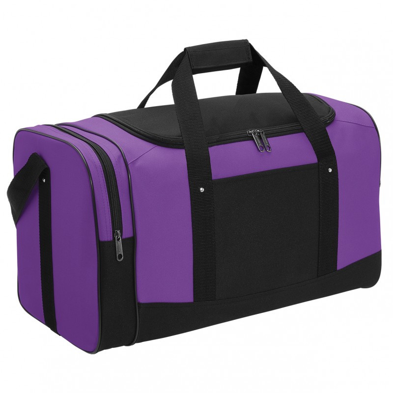 This practical lightweight duffle with a 15.6inch laptop compartment with a large main compartment with RFID pockets. Manufactured from 1680D and 600D polyester the sports duffle is fitted with a shoulder strap for comfort. Other features include side shoe compartments, a front zippered pocket, and a quick-access side pocket.