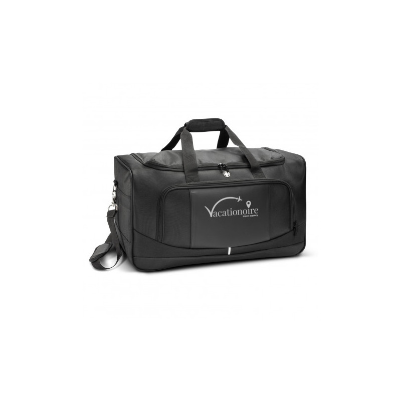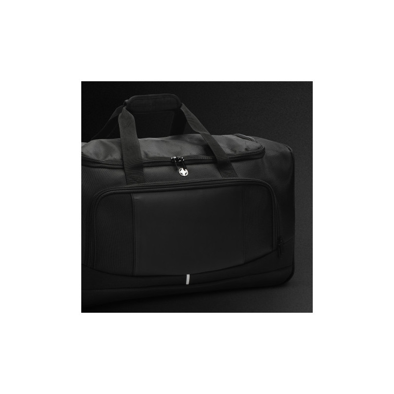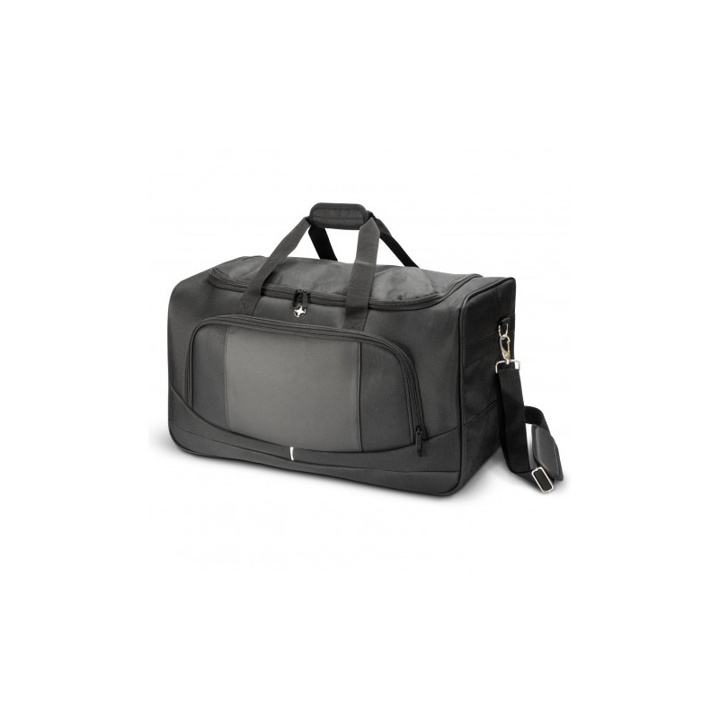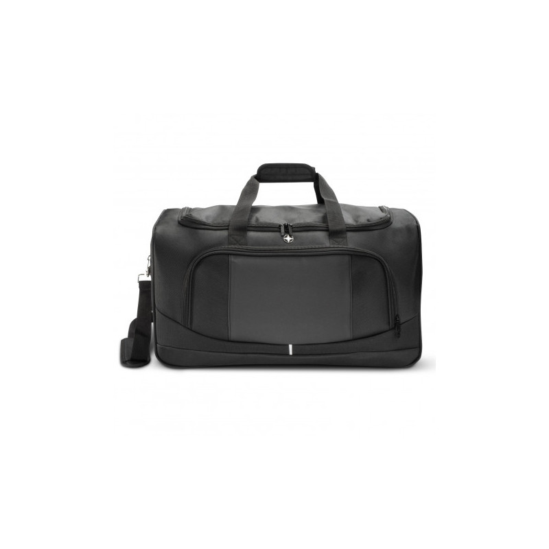 This practical lightweight duffle with a 15.6inch laptop compartment with a large main compartment with RFID pockets. Manufactured from 1680D and 600D polyester the sports duffle is fitted with a shoulder strap for comfort. Other features include side shoe compartments, a front zippered pocket, and a quick-access side pocket.