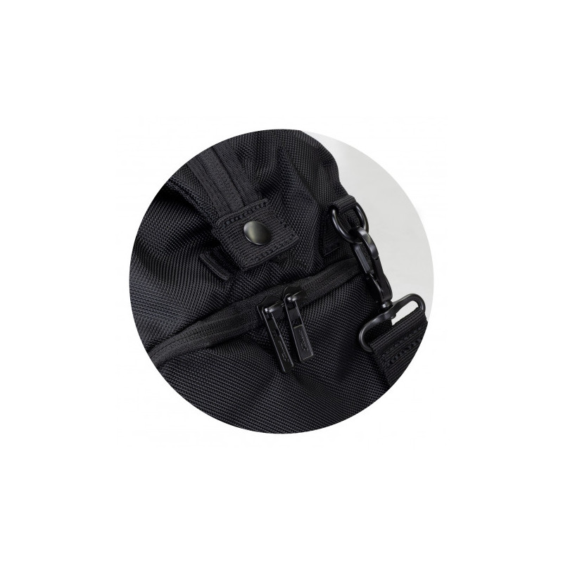 This practical lightweight duffle with a 15.6inch laptop compartment with a large main compartment with RFID pockets. Manufactured from 1680D and 600D polyester the sports duffle is fitted with a shoulder strap for comfort. Other features include side shoe compartments, a front zippered pocket, and a quick-access side pocket.