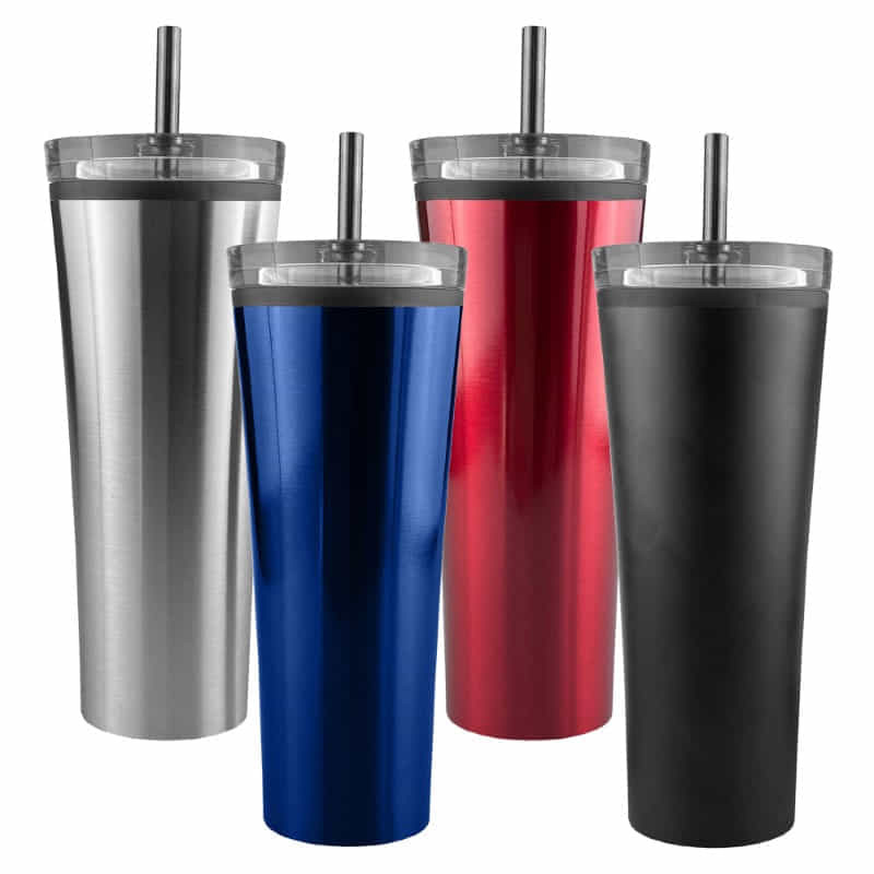 Keep your fresh juice, smoothie, shake, iced coffee or tea cool on the go. 500ml capacity stainless steel tumbler, stylish design, double walled and vacuum insulated with a stainless steel lid and straw, made of 304 grade stainless steel. Matt finishing painted exterior and electrolysis interior, BPA free, cannot be microwaved and handwashing only.