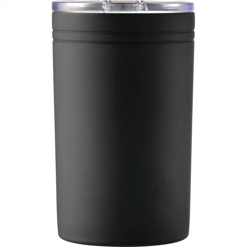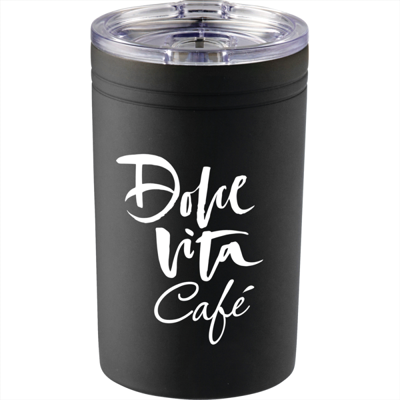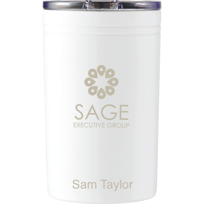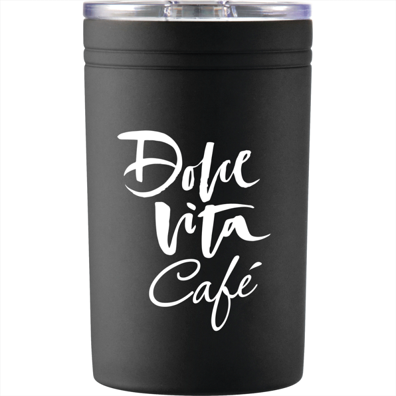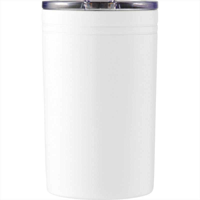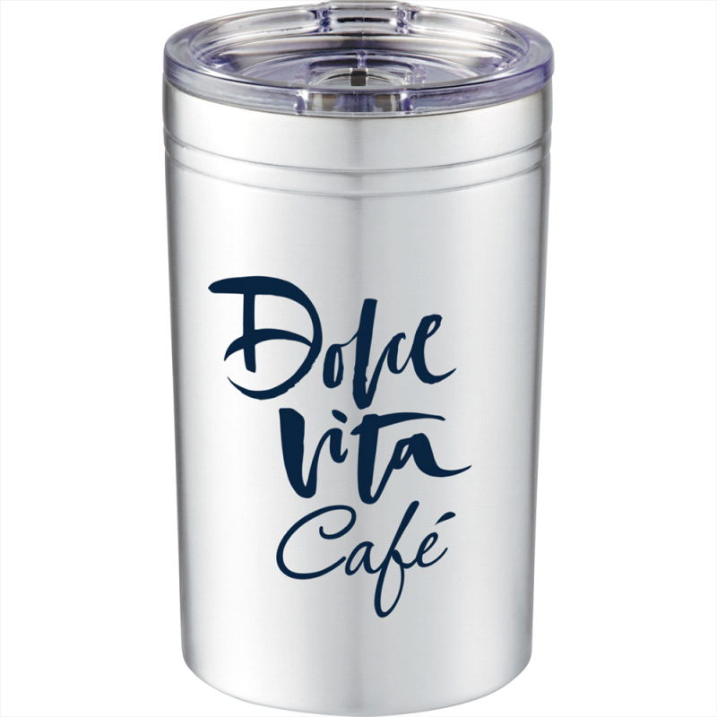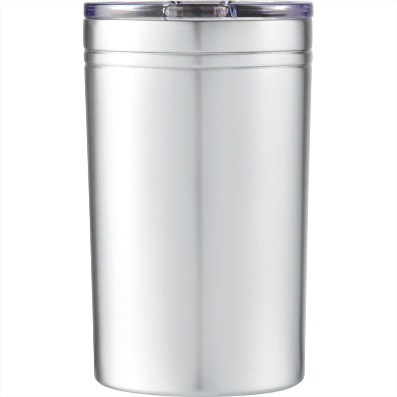 An ideal beverage companion for your daily life; 304 food grade stainless steel and double-wall vacuum insulated, which will keep your coffee hot and cocktail cold. 325 ml capacity, durable construction for outdoor use, clear plastic pressure lid with a splashproof push-seal closure. BPA free and handwashing is recommended.