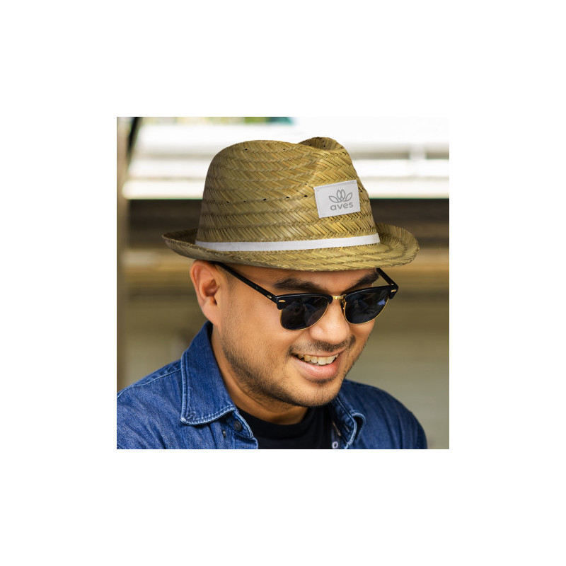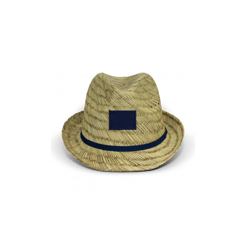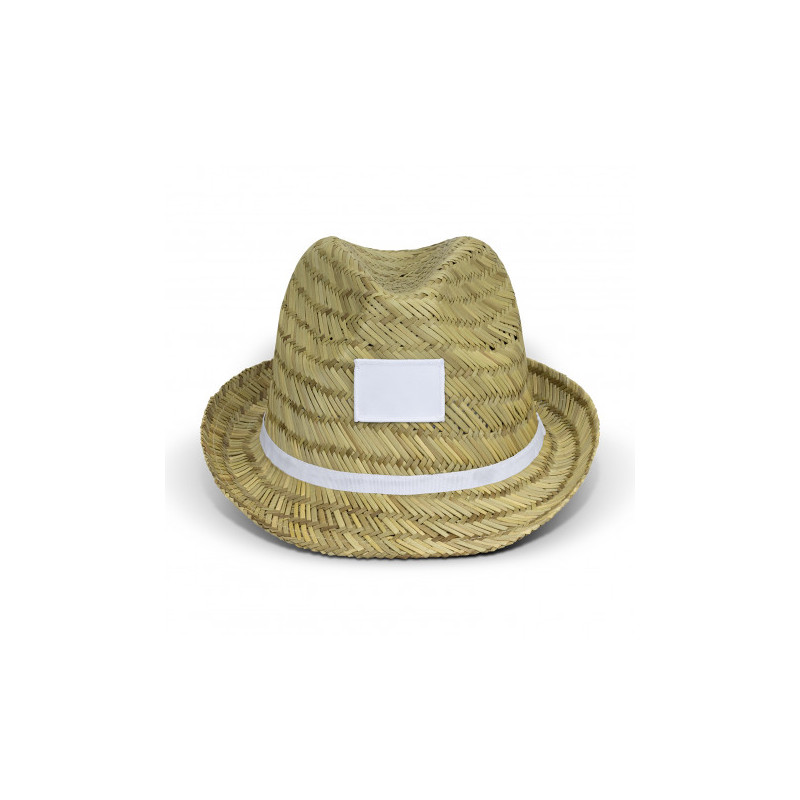 Classic straw fedora with a coloured polyester ribbon and a matching polyester patch for convenient and prominent branding. The fedora has a sweatband for added comfort and is available in three sizes to fit most people.
