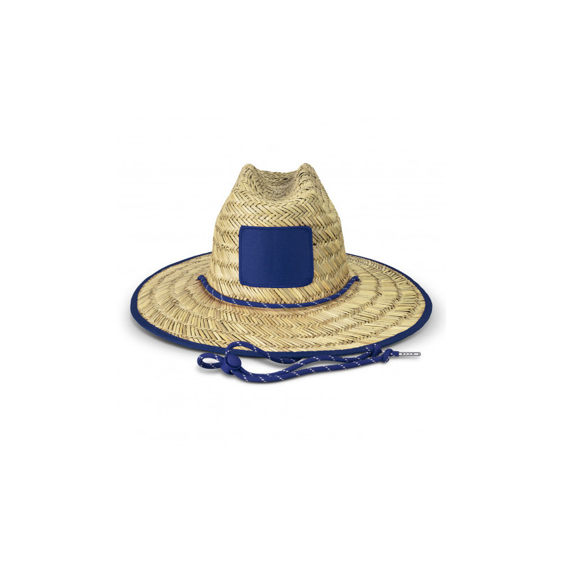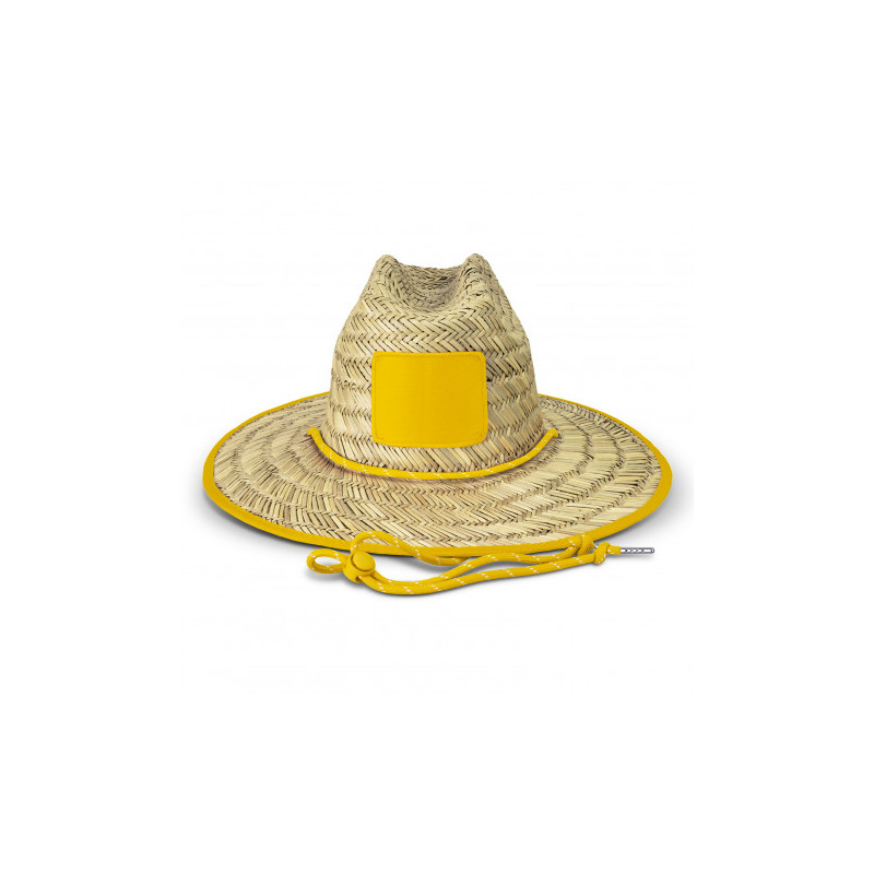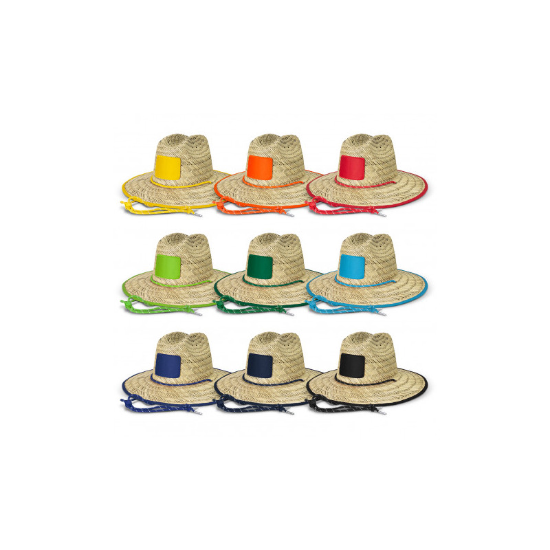 Classic wide brim straw hat with coloured trim. This breathable hat is ideal for summer months and features a woven polyester patch that provides an affordable branding opportunity. An adjustable chin strap with a toggle ensures one size will fit most people.
