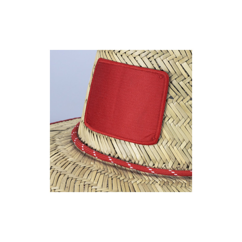 Classic paper weave wide brim hat with a coloured polyester ribbon, featuring a patch for convenient and prominent branding.