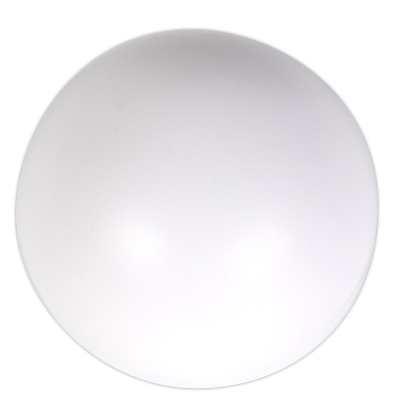 Round ball shaped squeezable stress reliever made from soft polyurethane.