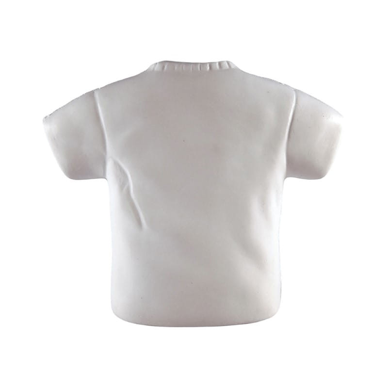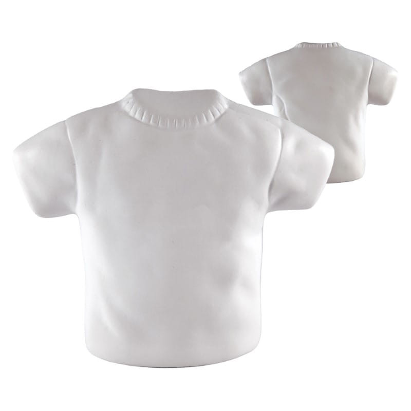 T-shirt shaped squeezable stress reliever made from soft polyurethane.