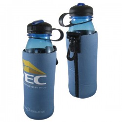 Water bottle cooler with glued base, taped & stitched seam, nylon belt strap and plastic hook clip. Colour: Various - please request.