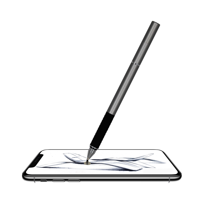 Metallic coloured stylus pen with silver coloured accents. Features grip for comfort while writing. Use with any touch screen device. Rubber tip keeps screen scratch free.