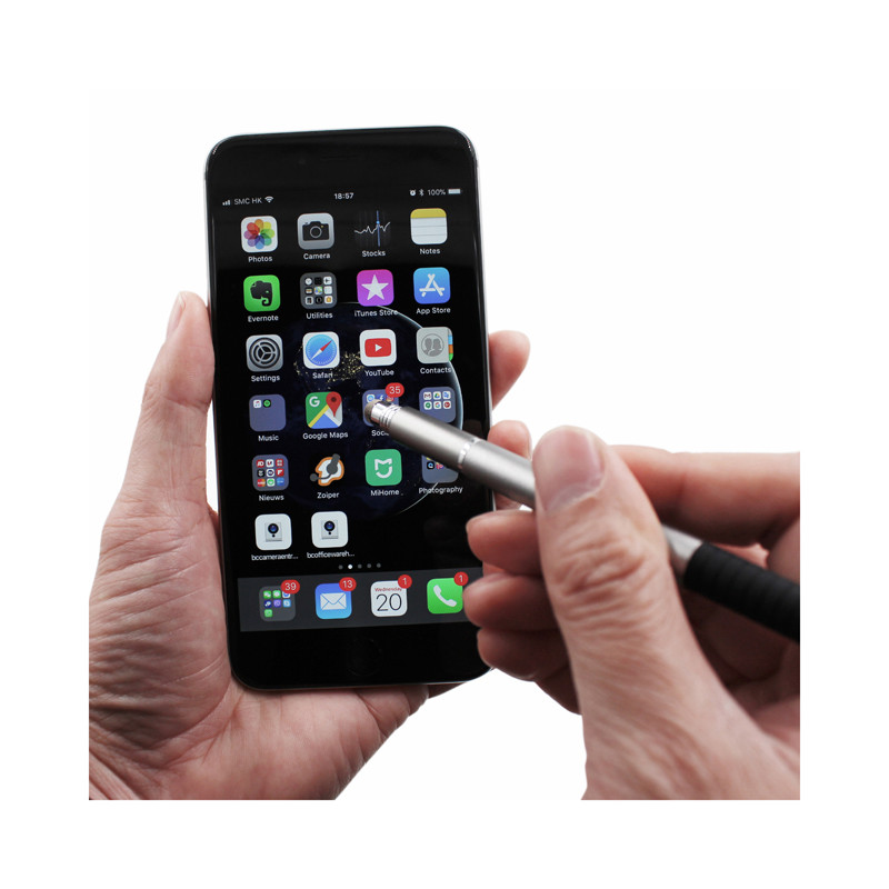 Stylus with mini phone jack. Gives you an extra finger for touch screen use, without leaving any marks. Store in your earphone connector when travelling. Product Notes Not all smart phones provide a mini earphone connector. Certifications: CE