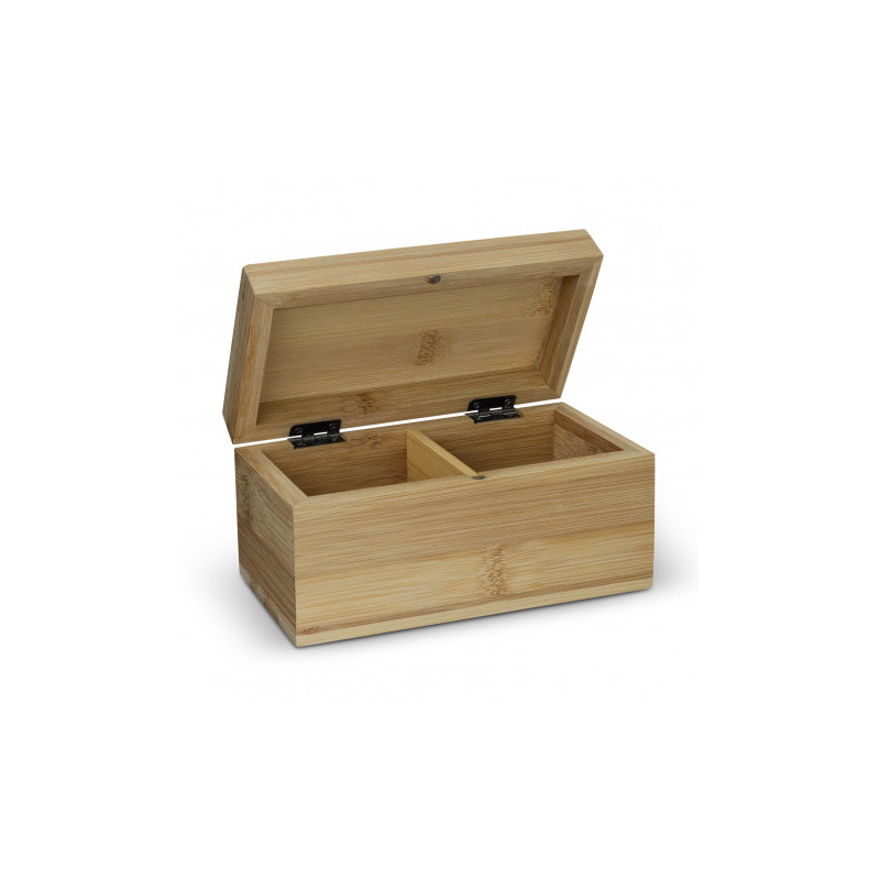 At our company, we offer a range of conference merchandise and products, including the Bamboo Tea Box. The minimum order quantities (MOQs) vary depending on the product and how it's decorated—whether printed or otherwise.