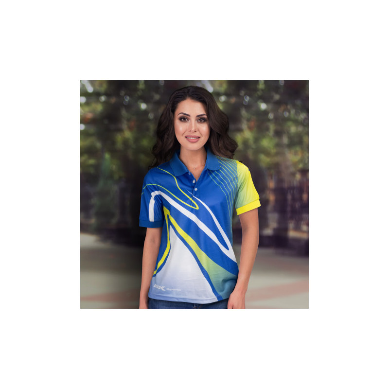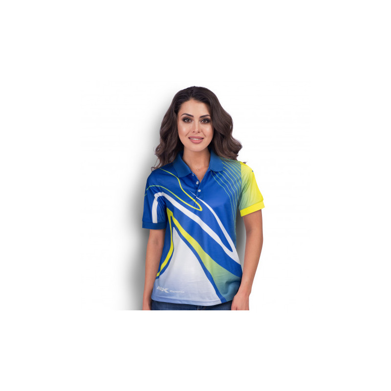 Premium custom womens tennis top manufactured from 160GSM 100% polyester pique material which is breathable and soft to touch. The top is a regular fit with 3 buttons on the plackets. The custom artwork is PMS matched with personalisation free of charge. A production lead time of 35 working days applies to this product.